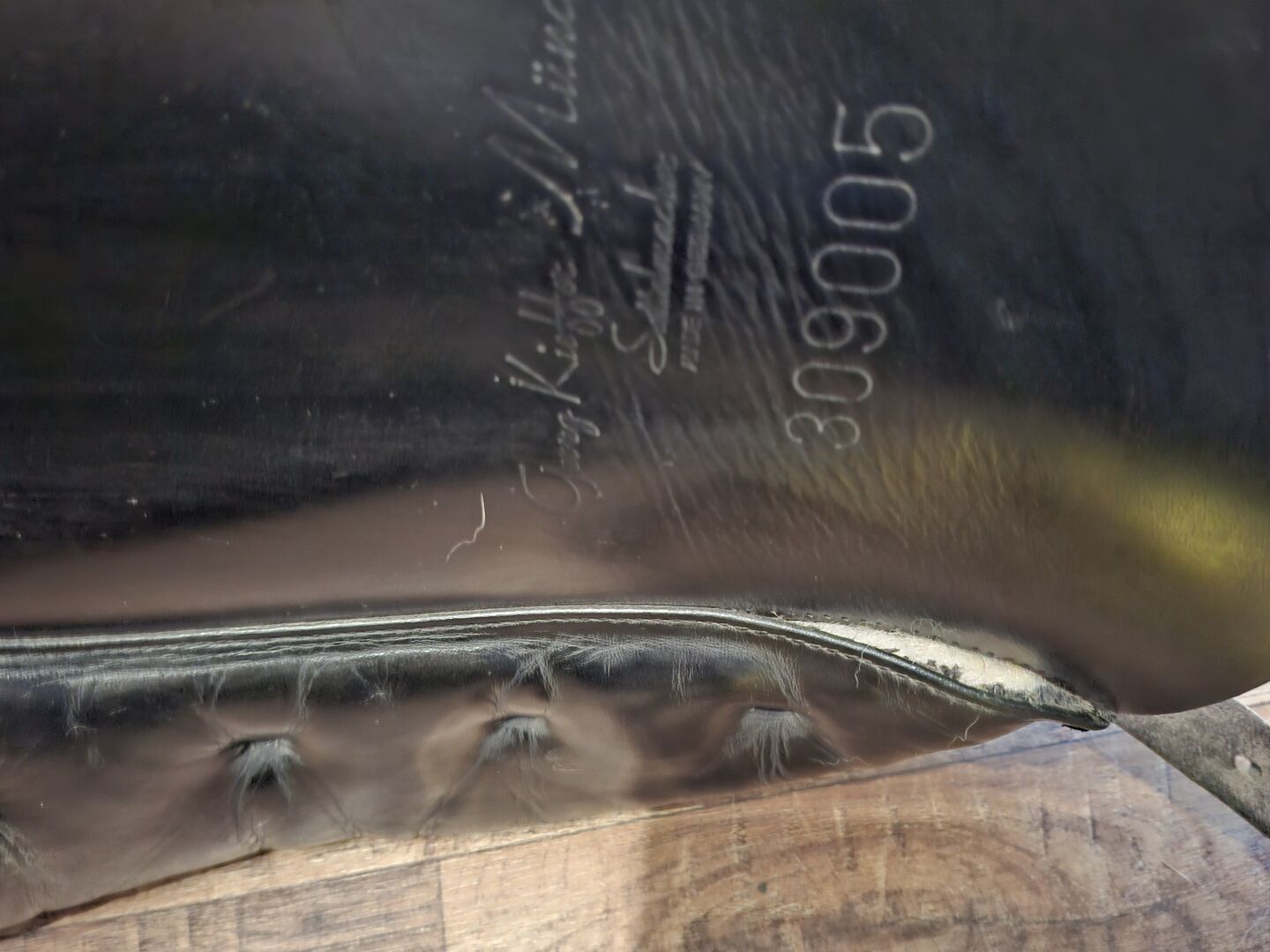 Stoner Dressuurzadel - De ene naad op het zadel is losgekomen, zoals te zien is op de foto. Verder zijn er gebruikssporen op het zadel, omdat het regelmatig gebruikt is.