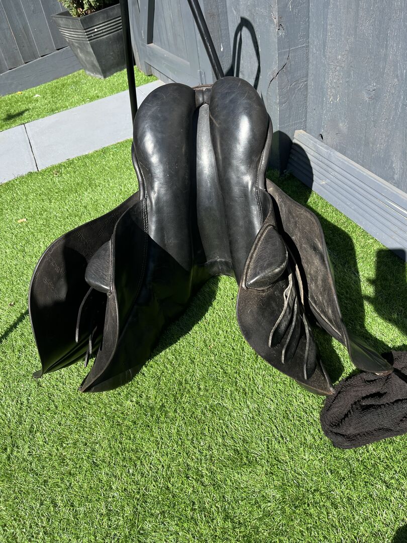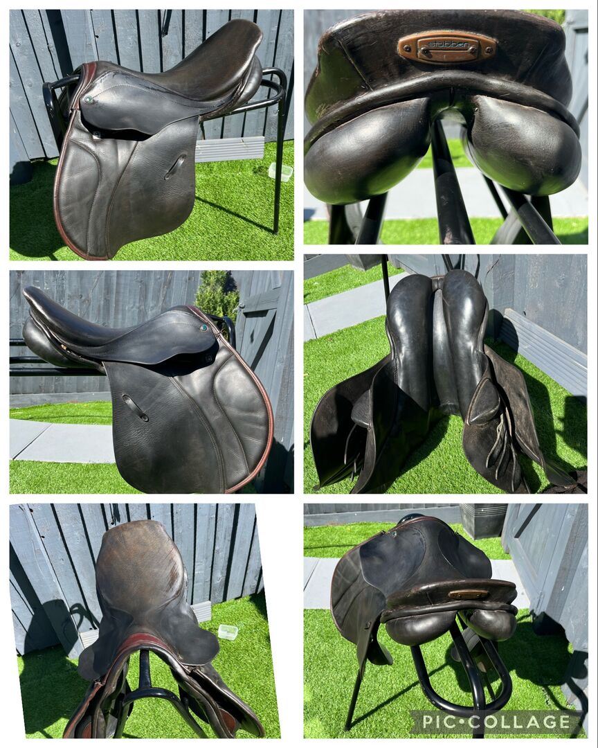 Stubben genesis 17”saddle, brown , older version lovely saddle does have water to it but that dose not effect the use of it at all, some stitching coming loose but hardly noticeable at all .
