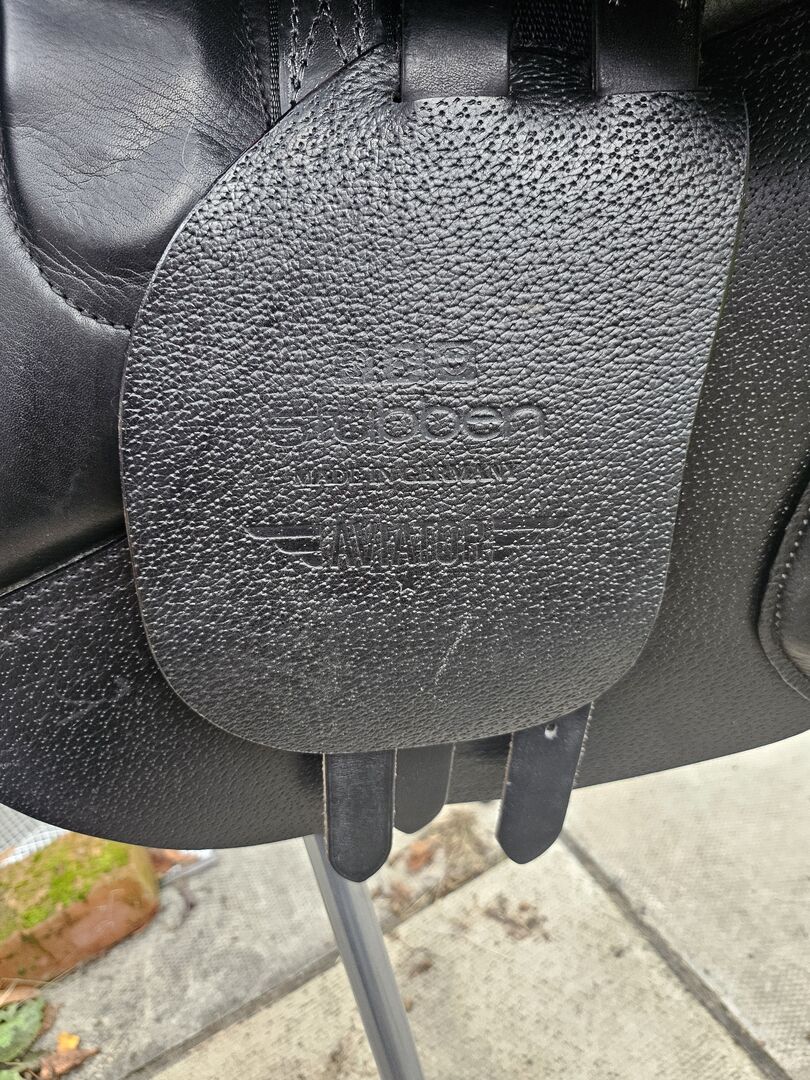 Beautiful quality and very comfortable jump saddle, handmade in Germany for 16.1 hh sportshorse. Very lightly used due to lack of soundness and now no longer needed. Cover included. Absolute bargain.
