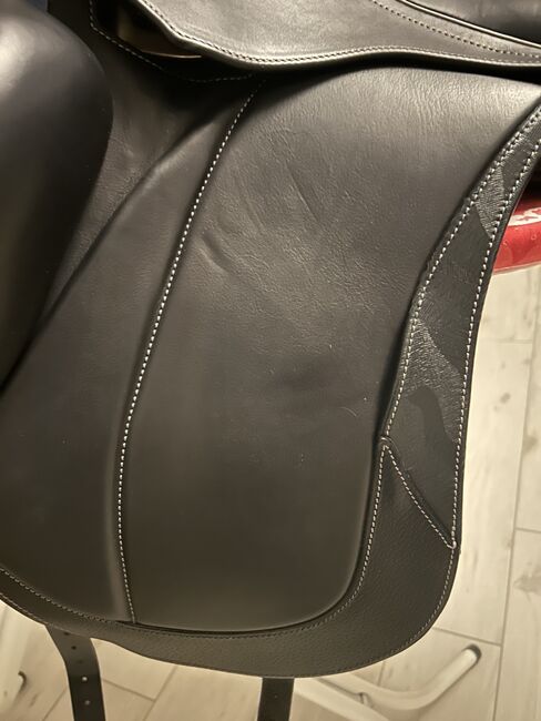 De eis van maximale nabijheid tot het paard kenmerkt het hele ontwerp. Het brede zitvlak in het gebied van de zitbeenknobbels in combinatie met de diepe, smal toelopende zit maakt het mogelijk om elke beweging van het paard te voelen en extreem precieze zithulpen te geven. De mono flap sluit nauw aan op de ribbenkast bij het aansingelen en versterkt het directe contact nog meer. Gerichte versteviging in het paneel onder de slokdarmplaat voorkomt drukpieken, verbetert de gewichtsverdeling en zorgt samen met het brede contactoppervlak voor veel comfort aan de zijkant van het paard.