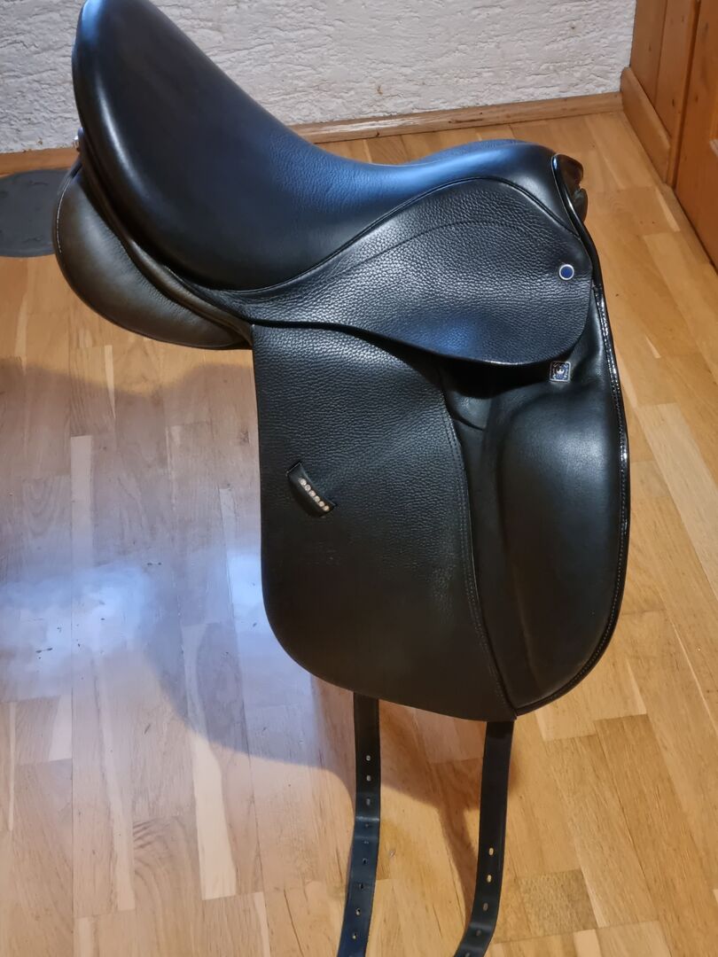 Stübben Jeventus "Glitter - Ik verkoop mijn dressuurzadel Stübben Jeventus "Glitzer" Design 17 inch. De oorspronkelijke breedte van de slokdarm was 31, maar werd door de zadelmaker veranderd in 33. Zadel is 3 jaar oud en in topconditie.