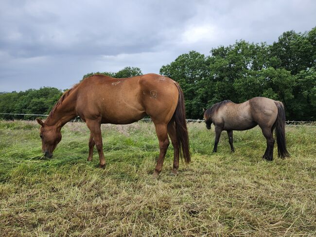 Succesvolle Quarter Horse merrie te koop in liefdevolle handen - Plaats: 54668 Echternacherbrück Shez Presidential is een mooie, compacte en correct gebouwde Quarter Horse merrie met een eersteklas Pleasure en Allround afstamming (Presidential Oder/Hot Impulse). Ze is geboren in 2010, is voskleurig en heeft een stokmaat van ongeveer 160 cm. De merrie is mensgericht, vriendelijk, open-minded en heeft een zeer sociaal en prettig karakter in de dagelijkse omgang. Ze is goed doorgefokt voor het smeden en laden, regelmatig gevaccineerd en ontwormd en blootsvoets. Shez Presidential is tot nu toe gezond, ze heeft geen bekende beperkingen en is 5-panel n/n, GBED n/p getest. In de box heeft ze af en toe de neiging om te weven, daarom staat ze bij voorkeur in een open stal. In de wei kiest ze haar paardenvrienden heel zorgvuldig uit en deelt ze niet graag de wei met elk paard. Met jonge paarden is ze absoluut ongecompliceerd. Onder de ruiter imponeert ze met haar fantastische gangen, veel go en goede rijdbaarheid, maar ze heeft een zelfverzekerde ruiter nodig. Ze is een ervaren instructrice in Western Pleasure en Western Riding, is ook crosscountry gereden en is bekend met onder andere strandritten. Vanwege haar houding ten opzichte van springen wordt ze niet meer geshowd omdat ze er geen plezier meer in heeft. Shez Presidential is succesvol uitgebracht in de sport en heeft 102 AQHA Performance Points verdiend in Western Pleasure en Western Riding en $2.700 LTE. Ze won talrijke circuitkampioenschappen, was Reichert Futurity Champion Limited Open en behaalde vele andere klasseringen. Ze is ook een zeer goede moeder en kreeg een geweldig veulen van Lazy Loper in 2024, die ook te koop is. Deze bijzondere merrie zal alleen verkocht worden in de allerbeste, liefdevolle handen waar haar karakter en kwaliteit gewaardeerd zullen worden.