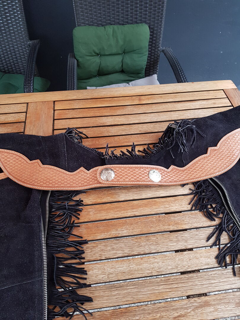 Suède Chaps - super mooie chaps zijn voor zeer smalle benen. Maat ik denk XS tot S. Neem de maten van de foto's.
