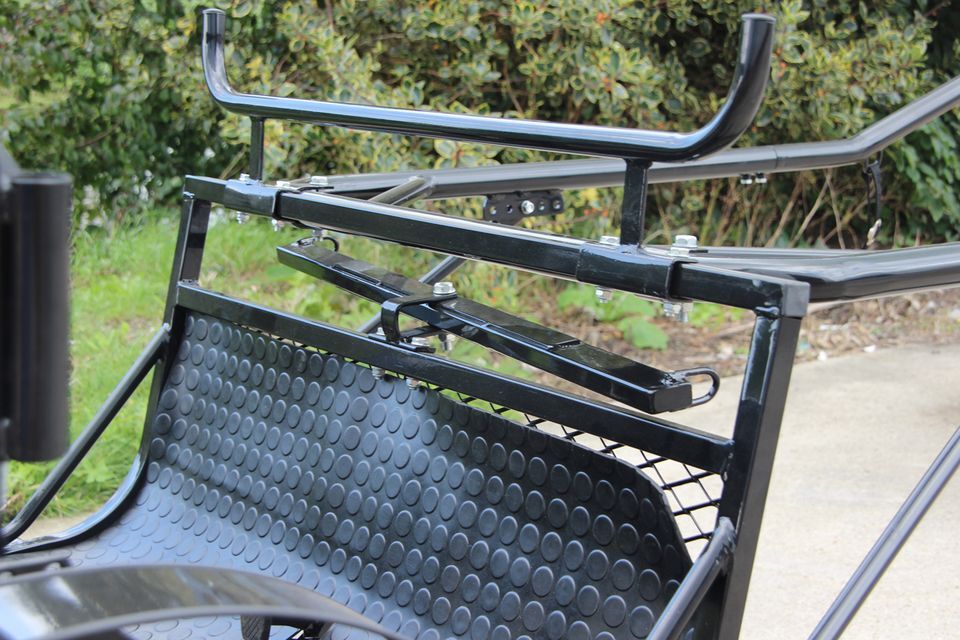 Om weggegeven te worden wegens tuigrijden De Pony Sulky "Oxer" is geschikt voor grotere pony's van ca. 110 cm tot 150 cm.De schaar kan in vijf stappen in de hoogte en traploos in de breedte aan de voorkant worden aangepast aan de grootte van uw pony.Deze sulky heeft bladvering op de as en extra schokdempers onder de zitting voor het best mogelijke rijcomfort.Spatborden, een moddermat en een zweephouder behoren ook tot de standaarduitrusting van dit model, net als het bokkussen voor de bestuurder. Er zijn ook twee nieuwe banden. Voor deze sulky is een breed scala aan andere accessoires verkrijgbaar, waaronder een bijpassende hoes.