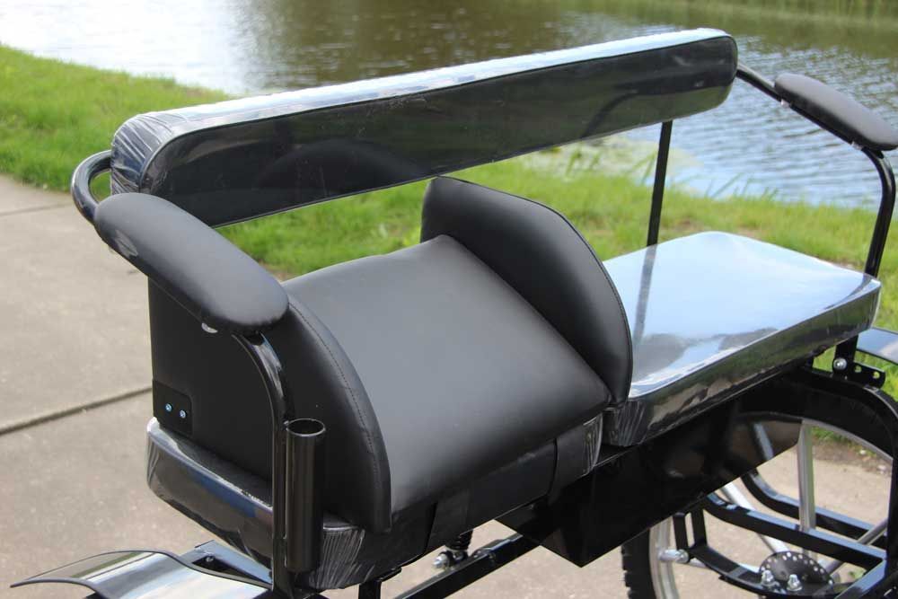 Kenmerken - stevige wielen 21 x 2,75" met dikke, stevige spaken - schaarhoogte 1,15 - 1,55 m - schaarlengte 1,75 m (andere lengtes zijn verkrijgbaar als accessoires) - buisdiameter aan de schaar 38 mm - Zitbreedte 106 cm, voor twee personen - Geveerde zitting - Spoorbreedte ca. 106 cm - Lengte ca. 2,0 m