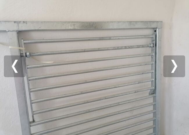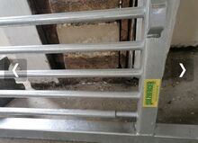 Verkoop van nieuwe schuifdeuren voor montage voor een muuropening als staldeur. Met andere accessoires is montage aan de voorkant van de box of het plafond mogelijk. Er zijn twee deuren, elk met 3 meter rail voor wandmontage en alle bevestigingsonderdelen inclusief schroeven. De houten bekleding van Douglashout met een dikte van 38 mm voor het onderste gedeelte is inbegrepen. De bovenste helft bestaat uit een rooster met een scharnierend "raam" zodat de paarden naar buiten kunnen kijken. 140 cm breed en 230 cm hoog. Standaard model. Hulp bij laden mogelijk. Per direct leverbaar. Normale levertijd 12 weken. Deuren zijn nieuw omdat we tijdens de levertijd hebben verschoven. Prijs per deur Ophalen