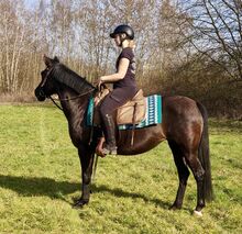 Ze is een zeer goed opgevoede en fijn te rijden pony. Ze is bereid om te leren onder het zadel en is constant in ontwikkeling. Ze heeft de neiging om snel te bewegen - ideaal voor iedereen die graag een pony heeft die graag wat sneller beweegt, maar altijd braaf en controleerbaar blijft. Ze is ook betrouwbaar in de wei, kijkt graag, maar is niet erg schichtig. Ze is western en Engels gereden voor de ontspanning. Ze geniet echt van vrijspringen en ik denk dat ze ook veel plezier zou hebben met een ruiter. Maar we hebben het nog niet geprobeerd.