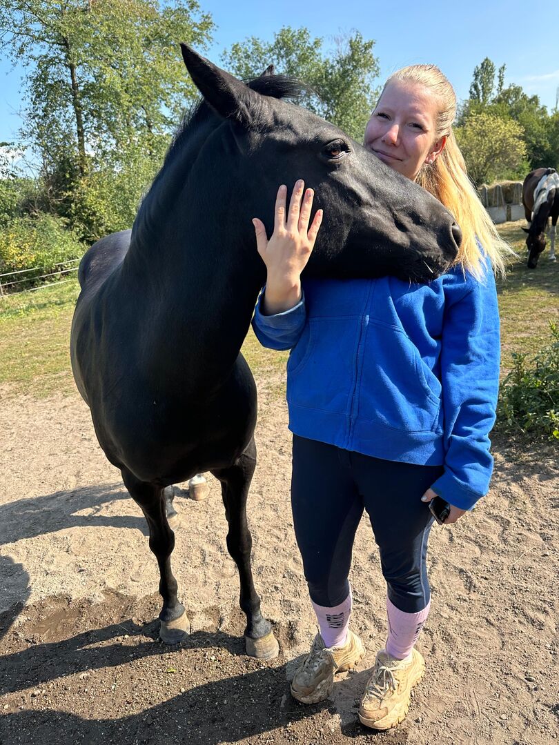 Ze is een absolute lieverd in de omgang: knuffelig, mensgericht en brengt graag tijd door met mensen - of het nu gaat om verzorging, een wandeling of gewoon samen knuffelen. Ze loopt blootsvoets en is braaf bij de hoefsmid.