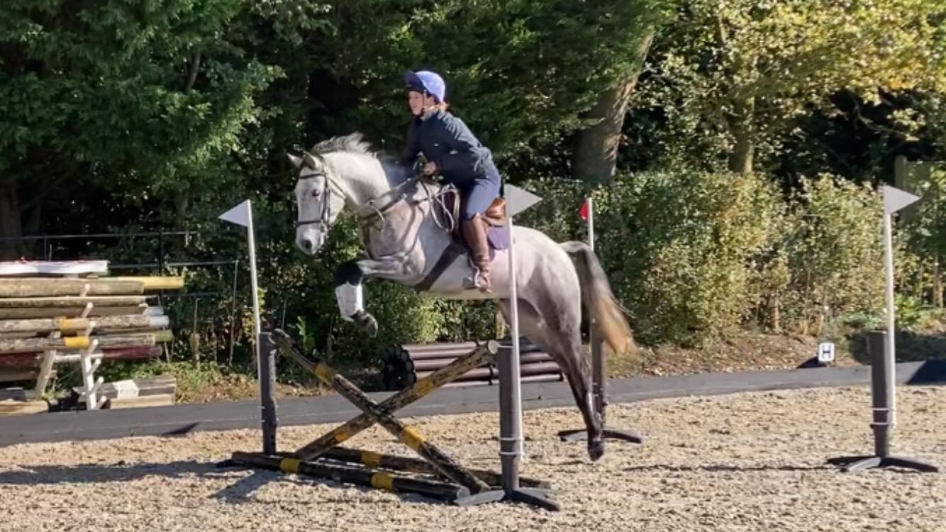 He moves beautifully on the flat. Has a lovely mouth and a very natural outline. Correct foundations ready for someone to build on. Lunges nicely. SJ & XC schooled. Easy to a fence. Forward going and takes his rider without being rude. XC schooled over ditches, steps, brightly coloured fences and water. Good in open spaces. Not phased by other horses schooling nearby. Safe, level headed and fun.