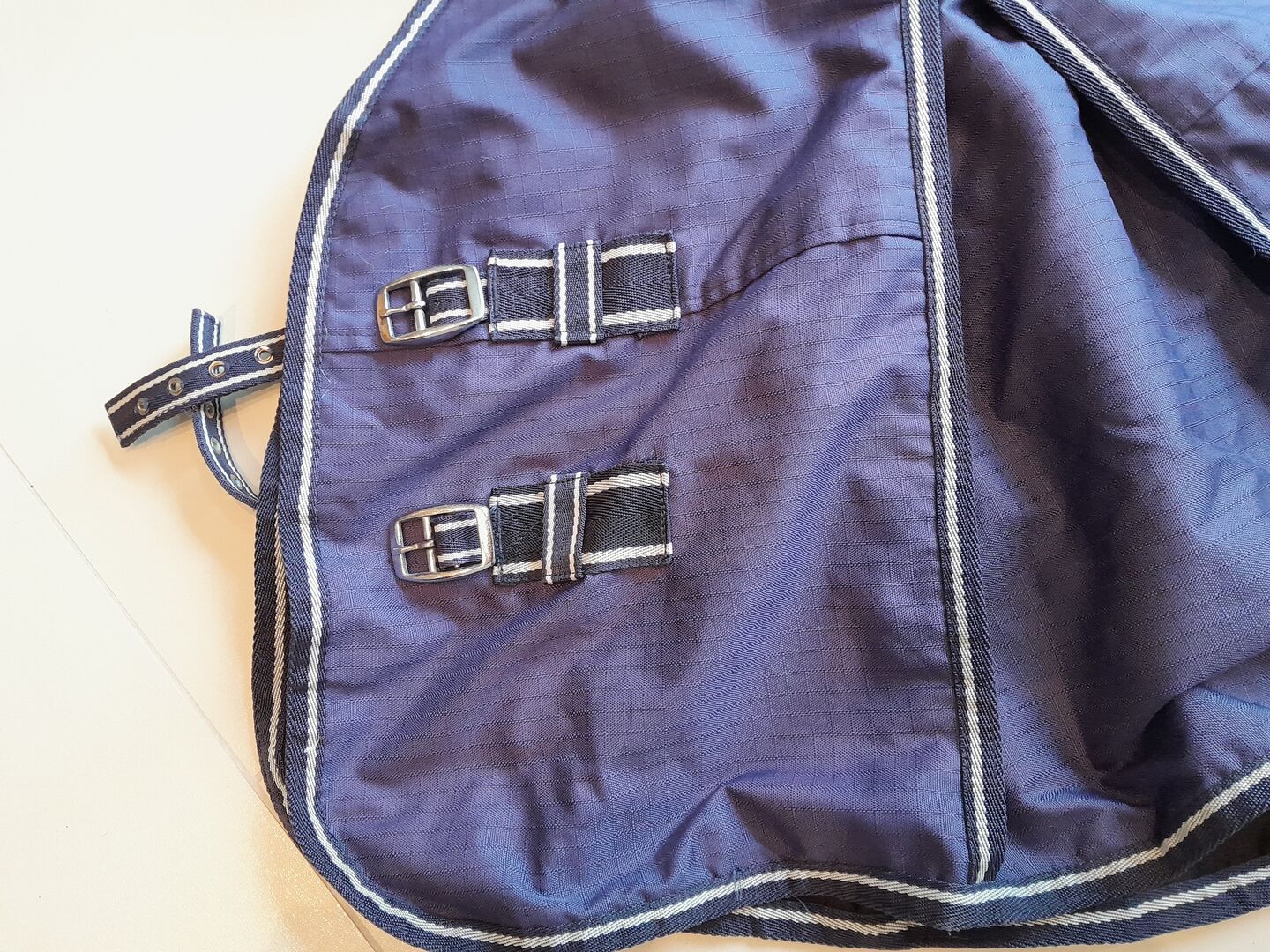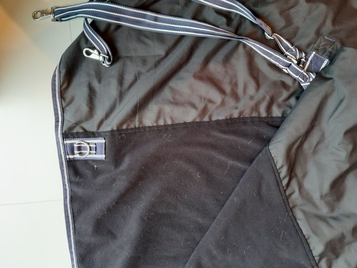 Swiss Horse Hoge Hals regendeken 125 blauw met Fleece - Ik verkoop een Swiss Horse hoge hals regendeken met fleece aan de achterkant. Lengte 125cm. De deken is gebruikt en vers gewassen, heeft geen gaten of vlekken. alleen een paar paardenharen die ik niet 100% weg kreeg.