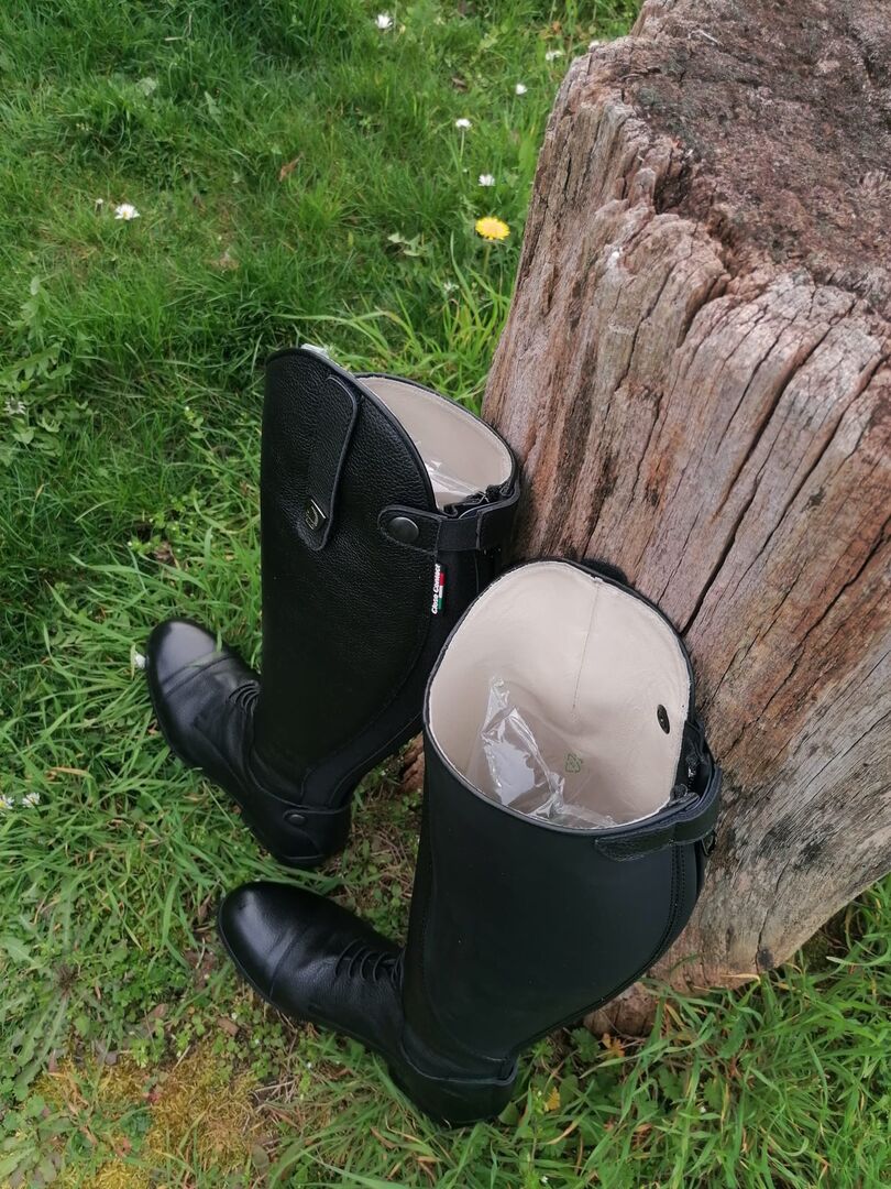 We kochten deze geweldige laarzen bij de Partner Pferd Leipzig en realiseerden ons thuis dat de sleehakken voor een betere pasvorm er niet bij zaten. Uiteindelijk waren ze te goed voor mijn dochter voor twee keer per maand rijles.