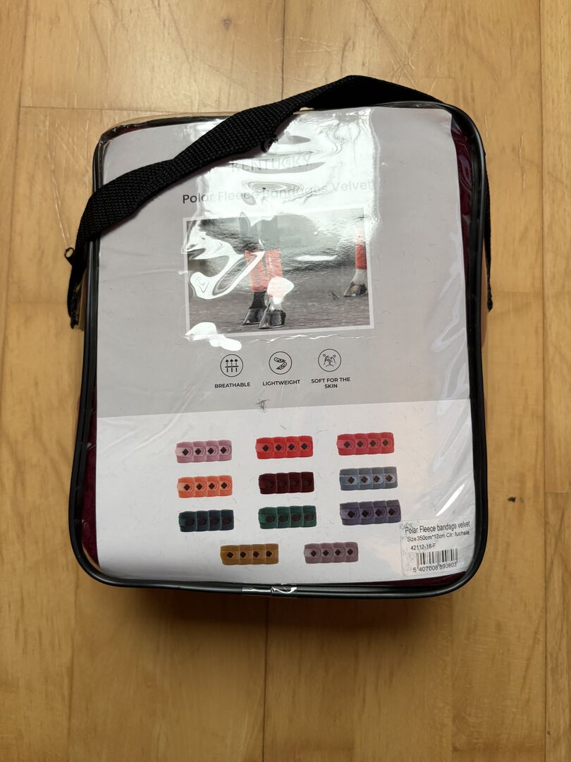 Bandages Velvet Fuchsia van Kentucky Horsewear, maat: Full, was een koopje, helaas passen ze niet op het bedoelde zadeldek, dus ik geef ze door, de bandages zijn nieuw en ongebruikt, zie foto's.