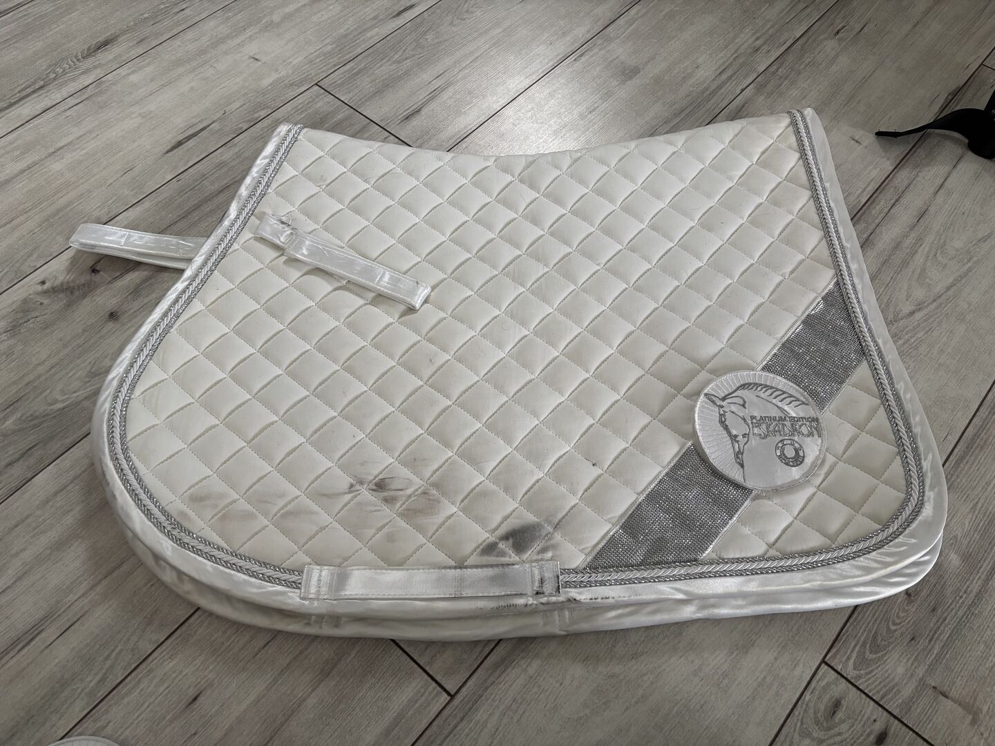 Te koop Eskadron Platinum Vs - Gebruikt Eskadron Platinum zadeldek in VS te koop. Het paardenhoofd aan de zijkant zit met klittenband vast en kan vervangen worden door een startnummer. Omdat ik geen wedstrijden meer rijd verkoop ik ze.