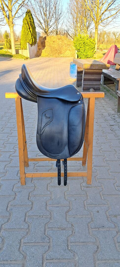 Het dressuurzadel heeft maat 17" en is gebruikt. Zie foto's.