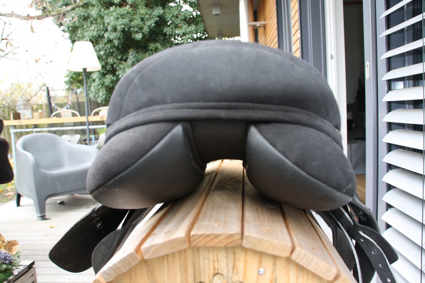 Thorowgood zadel - Dit zadel is ideaal voor paarden met een hoge schoft en een brede ruggengraat. Supercomfortabel, lager zadel dat je meer zekerheid geeft in het zadel. De luxe suèdelook stoelbekleding en kniekussens zijn antislip en zeer comfortabel om mee te rijden. Als u echt geïnteresseerd bent, stuur ik u graag meer foto's en afmetingen.
