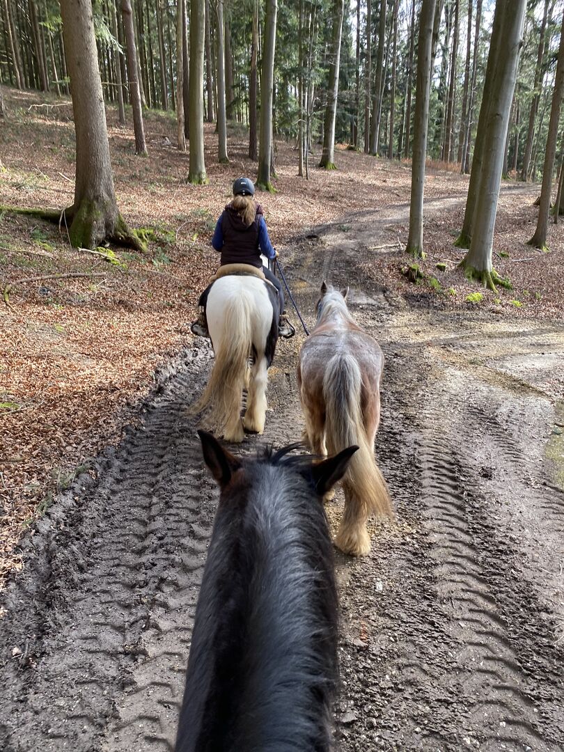 Hij werd voorzichtig ingereden toen hij 5 jaar oud was. De meeste tijd waren we op het platteland. Over heuvels en dalen, hij gaat overal mee naartoe. We zijn ook op paardrijvakantie geweest en naar het meer. Hij is ongeveer 4 jaar geleden ingereden door de nationale trainer Mr C. Geiger. Sindsdien is hij niet meer bereden, maar wel sporadisch. Hij heeft hier nog steeds routine nodig.