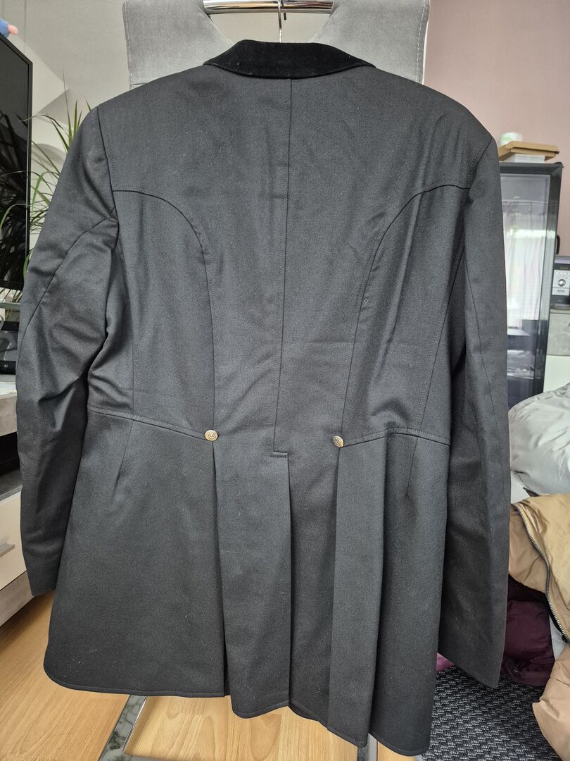 Toernooi-jas Jas zwart maat 44 - Gedragen op shows, geen fouten. Ik heb niets gemerkt, maar er kan hier of daar een kleine vlek van het paard zitten.