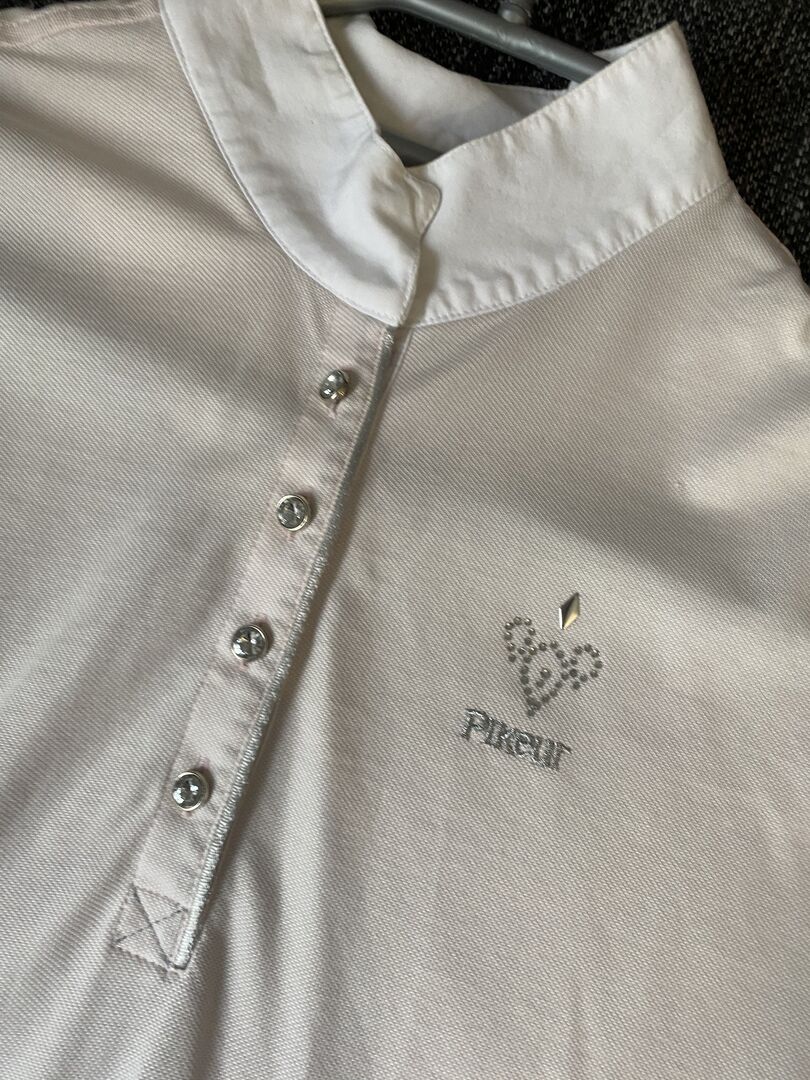 Toernooi shirt - Show shirt van Pikeur te koop. Het is roze met witte kraag en glittersteentjes als logo. Het shirt is nooit gedragen. Maataanduiding 42
