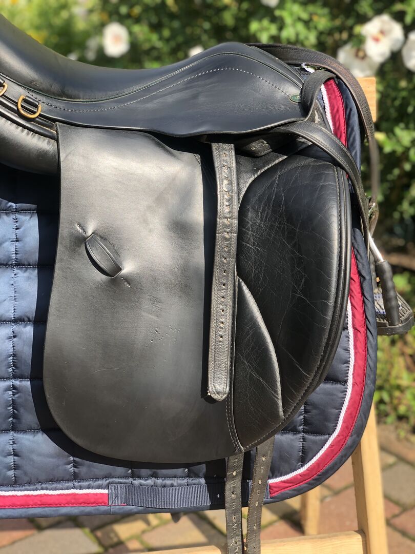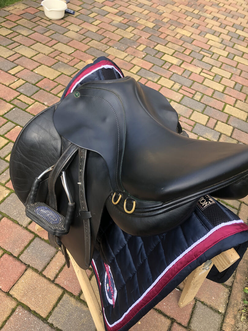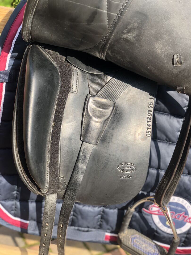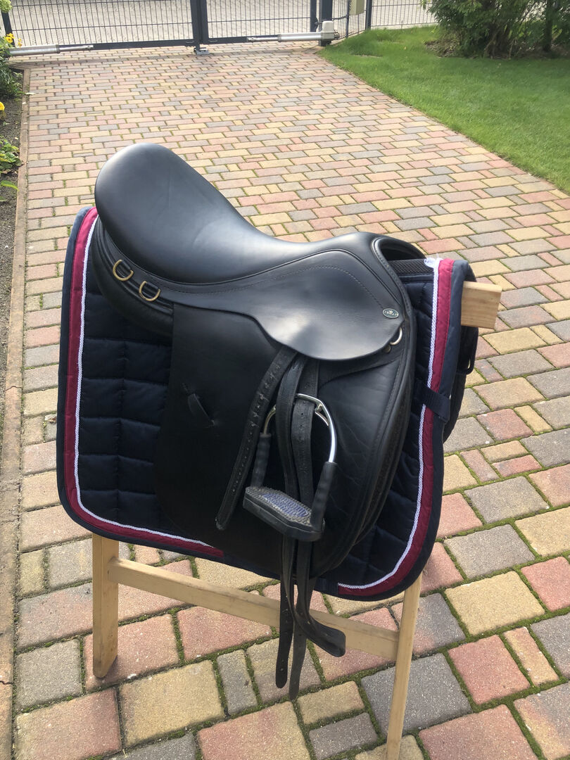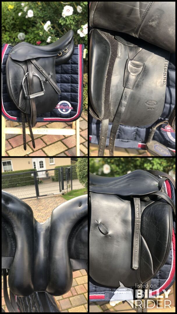 De foto's geven de huidige staat weer en tonen ook alle tekenen van gebruik. Passier stijgbeugelriemen en Bow Balance stijgbeugels van Sprenger kunnen verkocht worden voor een extra €140.