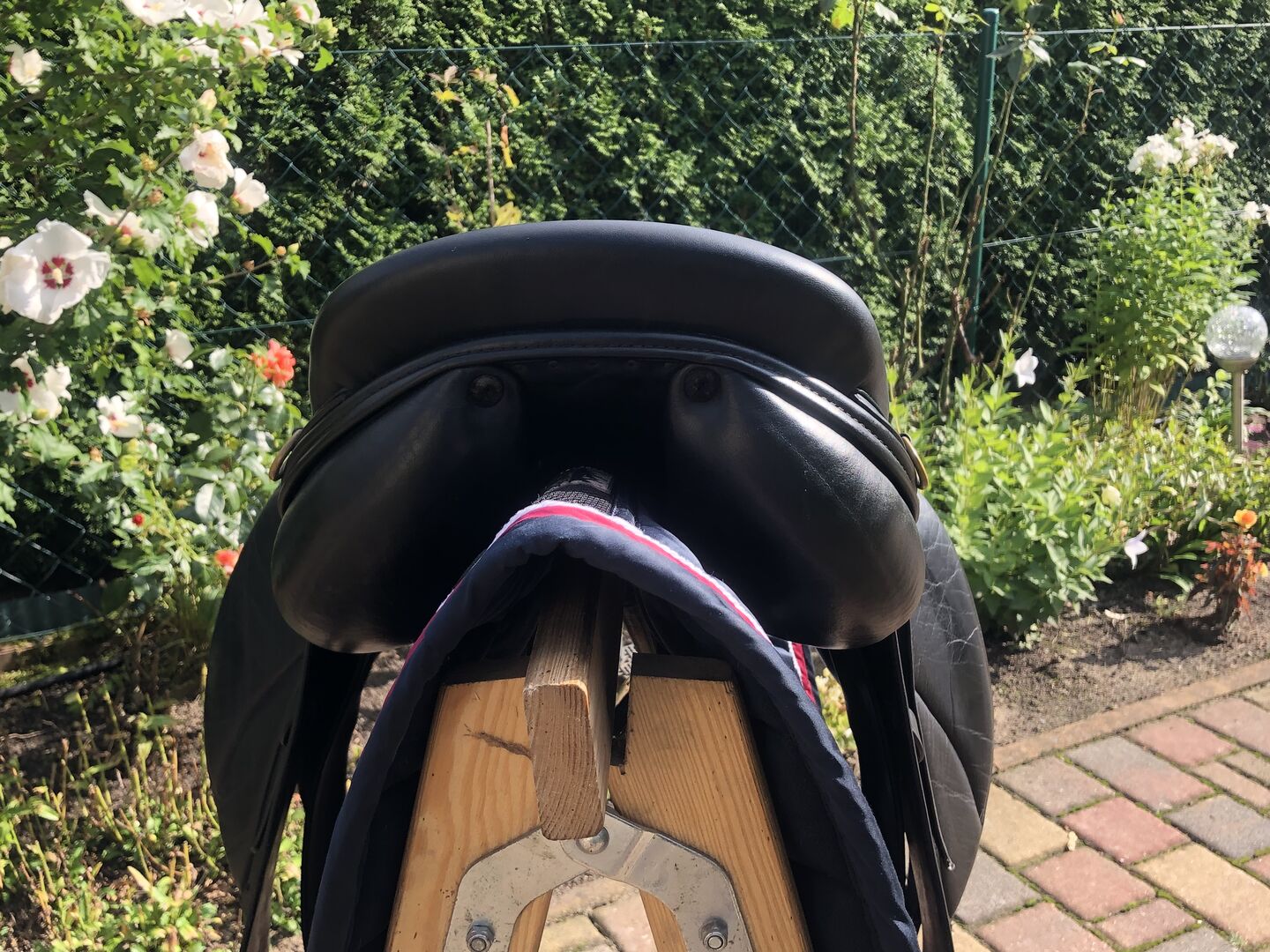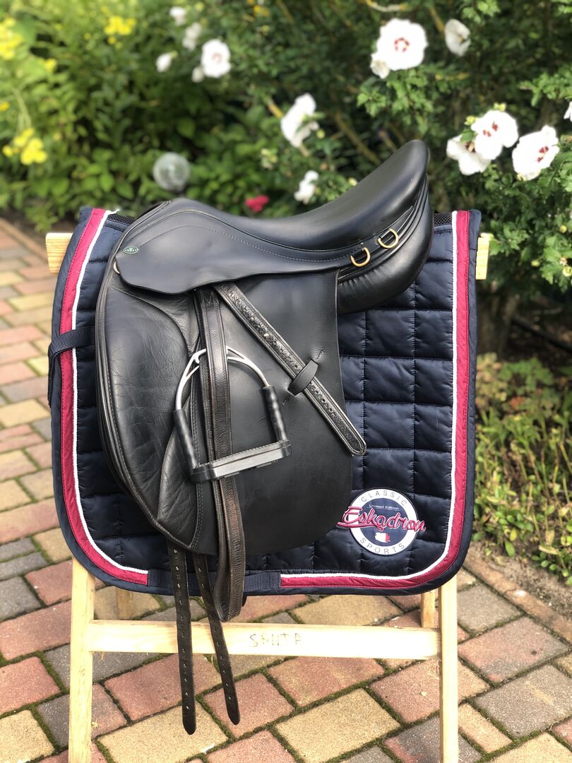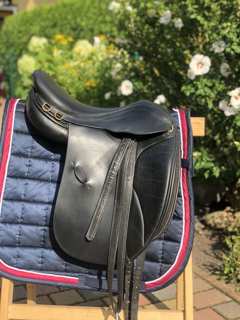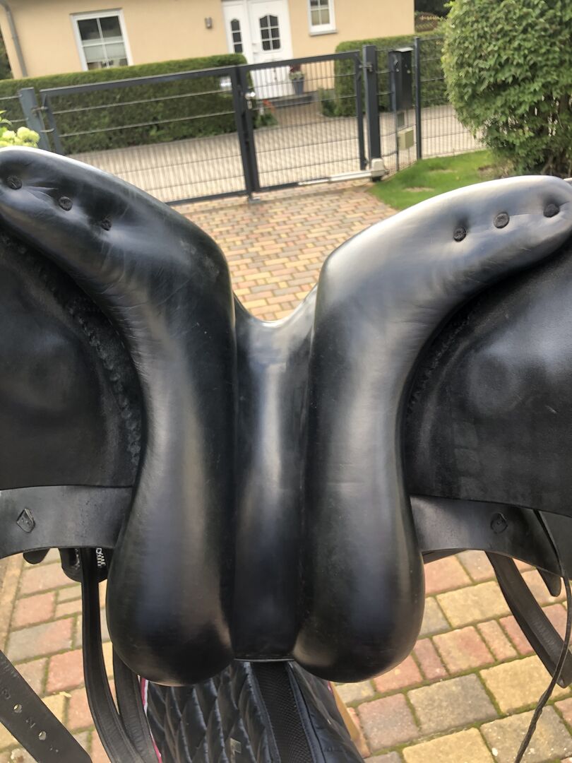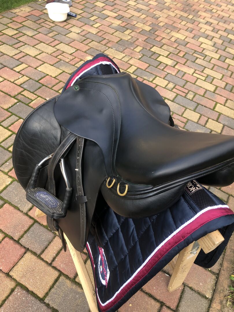 De foto's geven de huidige staat weer en tonen ook alle tekenen van gebruik. Passier stijgbeugelriemen en Bow Balance stijgbeugels van Sprenger kunnen verkocht worden voor een extra €140.