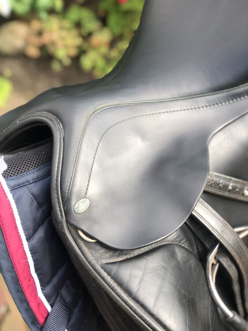 TOP CONDITIE!!! Tomax Icelandic Dressuurzadel 17,5 inch - Ik verkoop een TOMAX Iceland zadel in zeer goede staat. Het zadel is jarenlang alleen als tweede zadel gebruikt. Na de verkoop van mijn pony is deze opnieuw bekleed en staat nu sinds eind 2016 in de opslag. Daarom werd hij slechts 3 jaar gebruikt nadat hij in 2013 nieuw werd gekocht. Het is zeer comfortabel om in te zitten en heeft een goede pasvorm, vooral voor paarden met een korte rug en een groot contactoppervlak.