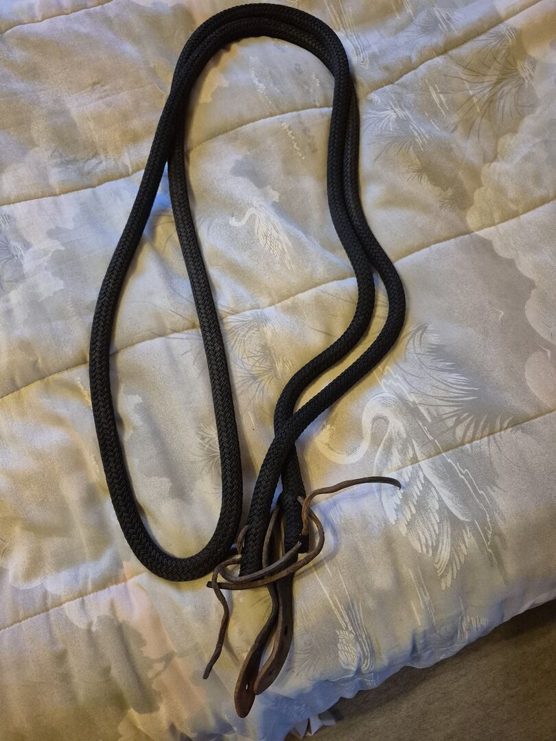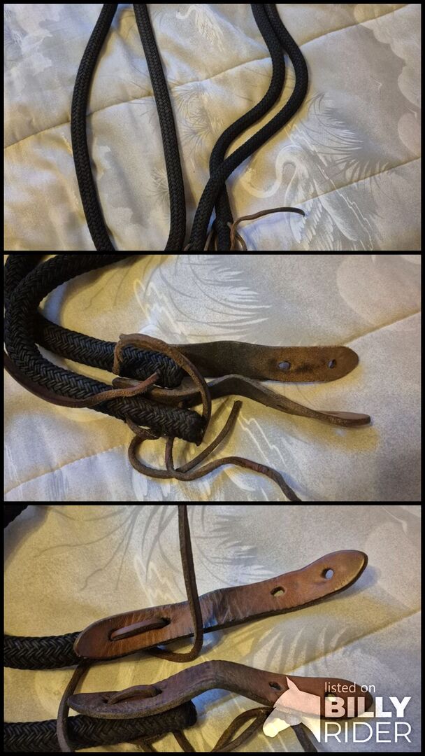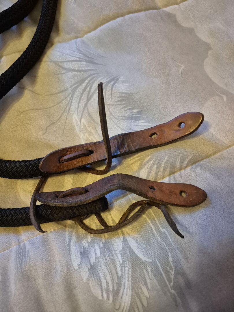 Touwteugels - Gebruikt, maar in topconditie, zwart met leren uiteinden tot gesp in