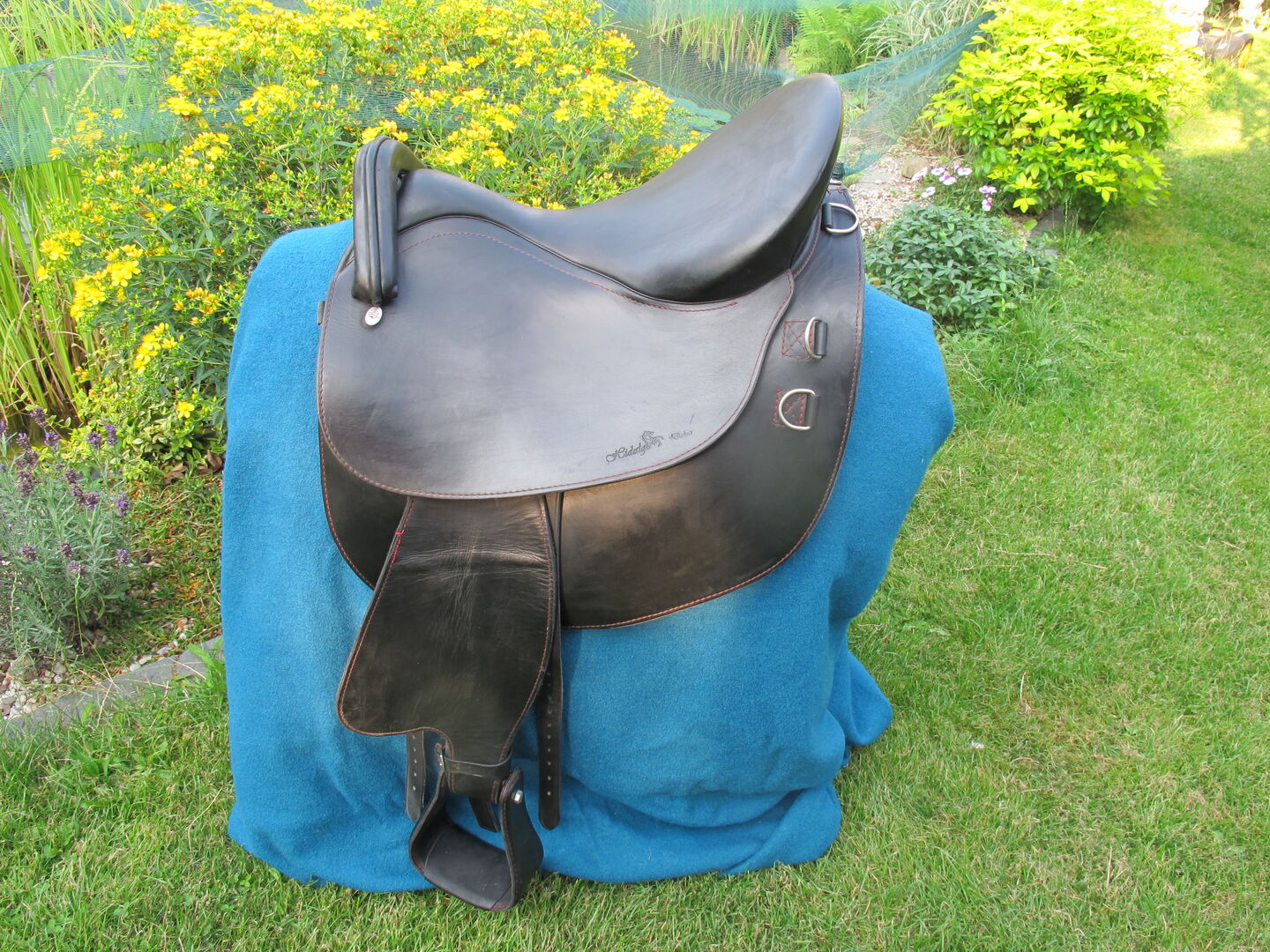 - Girthing: V-girthing, gussets voor korte singels - drie-dimensionale beweegbare PolyFlexTree zadelboom - panelen zijn gevuld met synthetische wol - brede zadelgeul - mogelijkheid om de slokdarm te verwisselen (28-36) - zeer kort en breed contactoppervlak (voor een betere, grotere drukverdeling), - handgemaakt in de EU van eersteklas Italiaans leder Zelfs de anders nogal moeilijke combinatie lange ruiter / kort paard is hier geen probleem! Superzacht zwart waxleder met rode stiksels. De stiksels op de spatborden komen heel gemakkelijk los, zie foto. Zadelhoes is inbegrepen. Particuliere verkoop, geen garantie of teruggave. Verzending betaald door de koper.