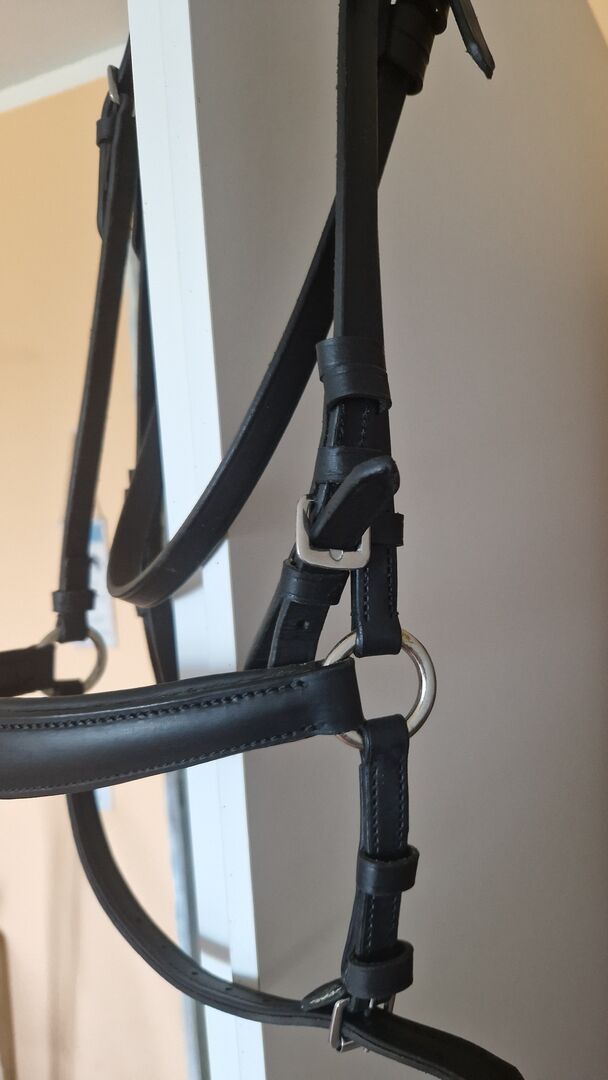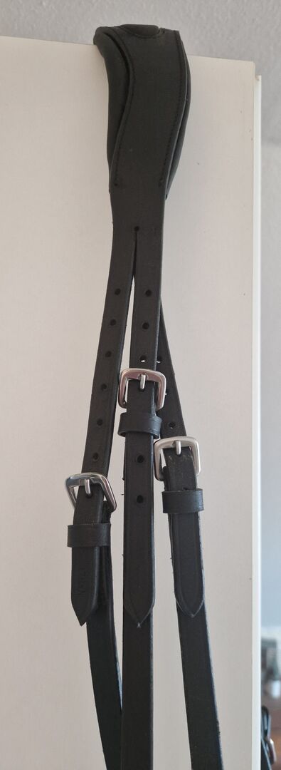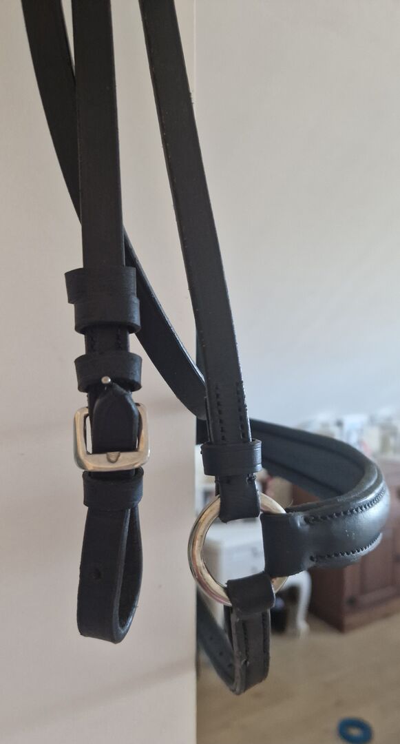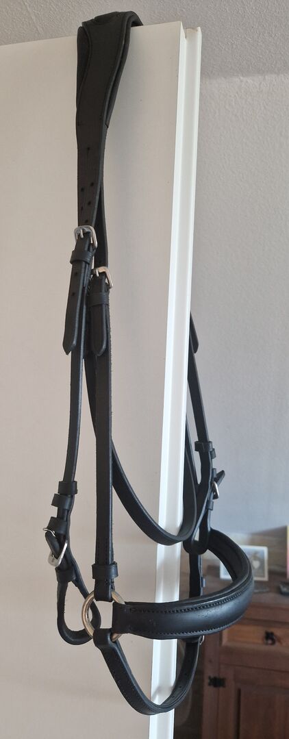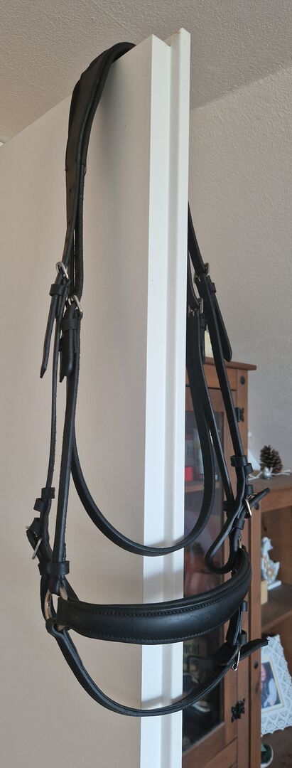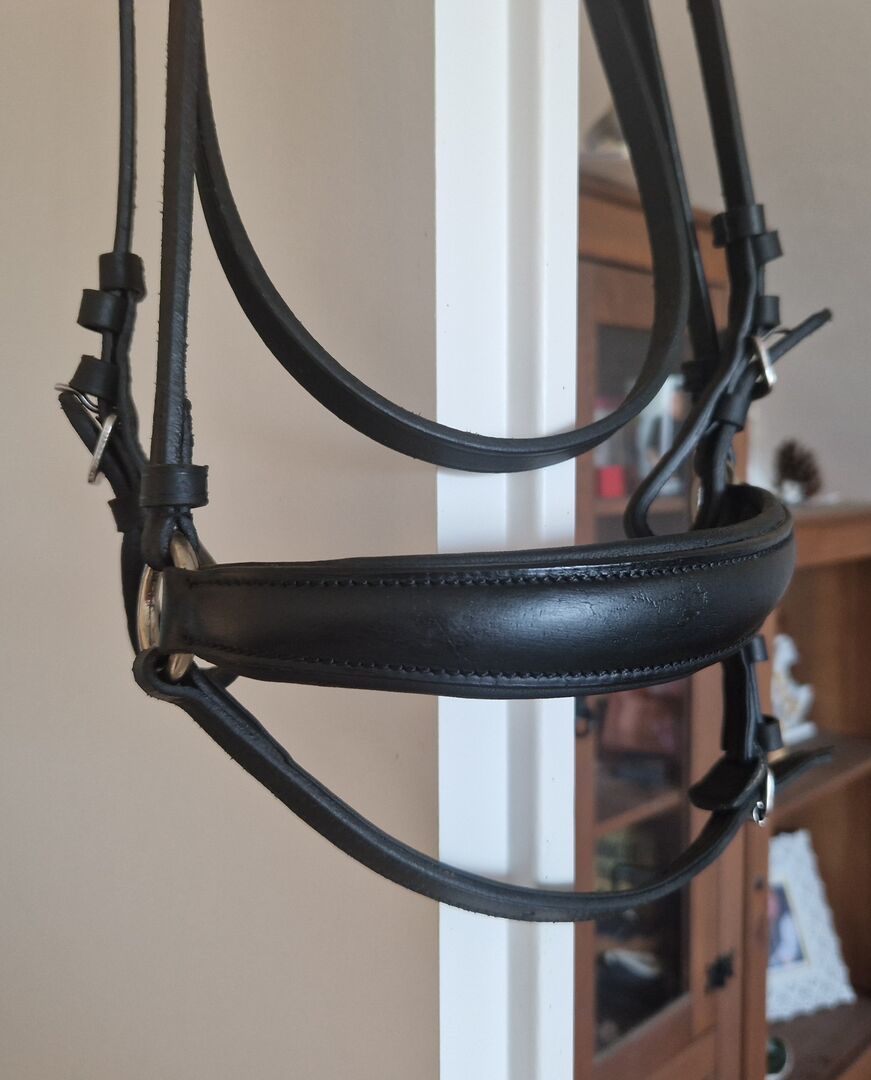 TRENSE WB-XL/Reins LED ZWART NIEUW - Snaffel bestaande uit een zacht gevoerd anatomisch kopstuk, een neusriem en bijpassende teugels.