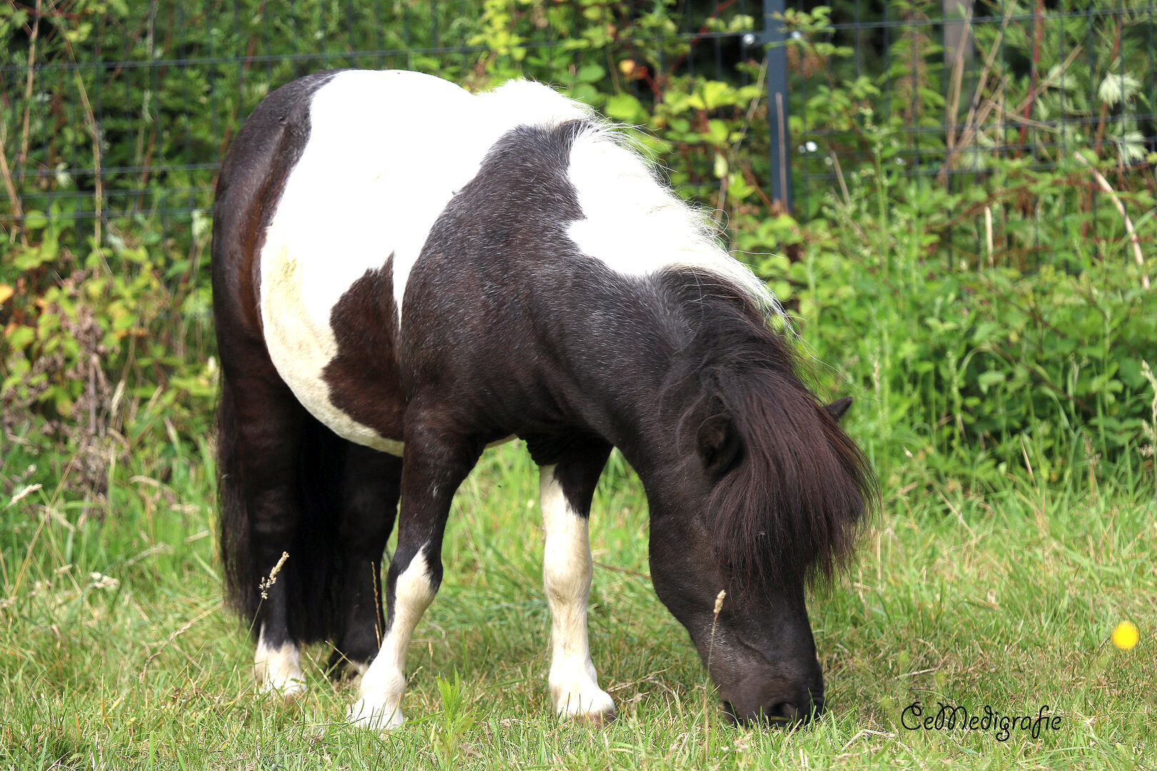 s Nachts zetten we ze binnen uit voorzorg. We zoeken een Shetty met een maximale hoogte van 1,10 m.