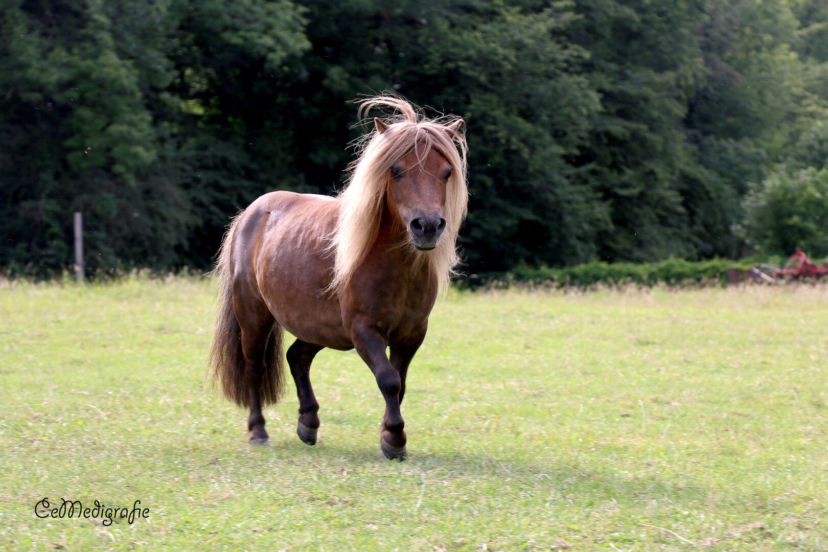 De Shetty moet kuddevriendelijk zijn en goed overweg kunnen met grotere paarden in de wei.