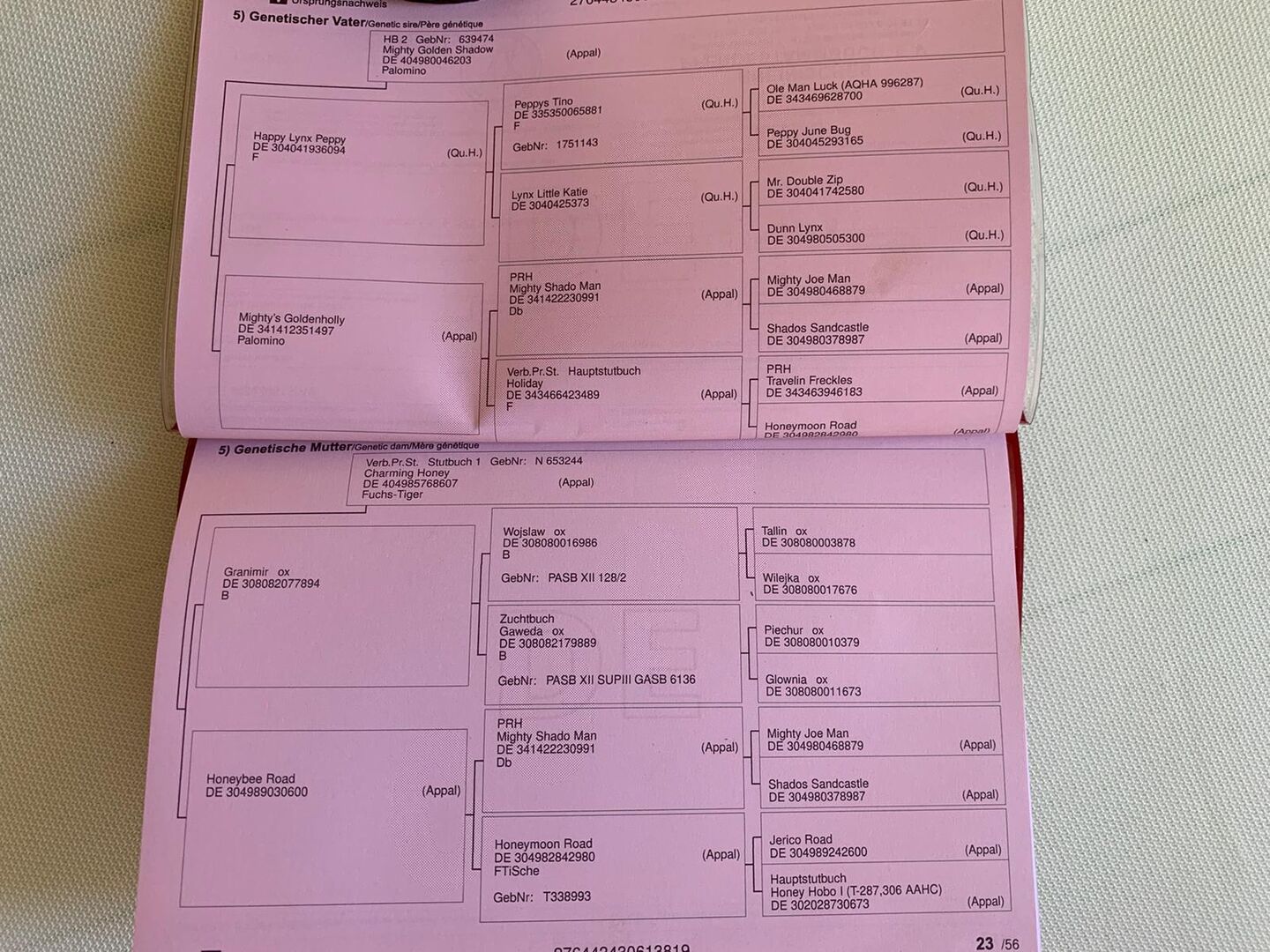 Moeder Charming Honey en vader Mighty Golden Shadow hebben hun grote karakter en goede constitutie doorgegeven aan hun zoon. Beide zijn te bezichtigen op de boerderij. Ze hebben allemaal een negatieve 5 panel test.