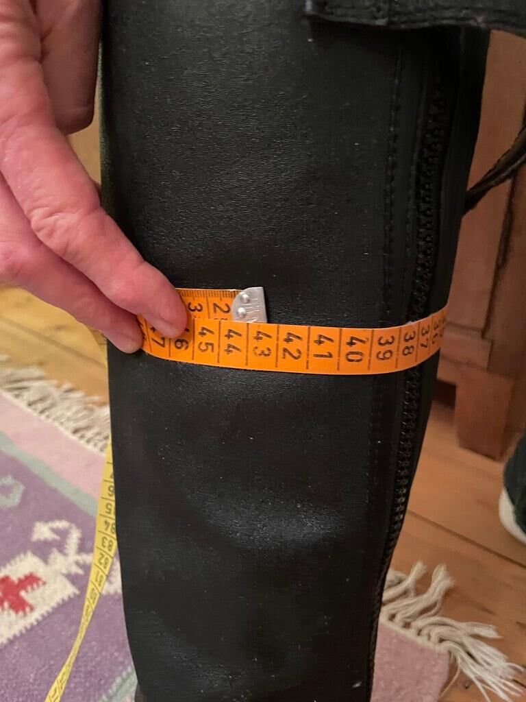 USG Jodpur-mini Chaps synthetisch leer zwart maat XL - Ik verkoop mijn eerder gebruikte en goed geconserveerde zwarte USG Jodpur Mini Chaps in maat XL (een goede 45cm lang, voor de sterkere kuiten). Alle onderdelen (rits, drukknopen, bretels) zijn in goede staat, de bretels heb ik iets laten inkorten, dat kan ongedaan gemaakt worden.