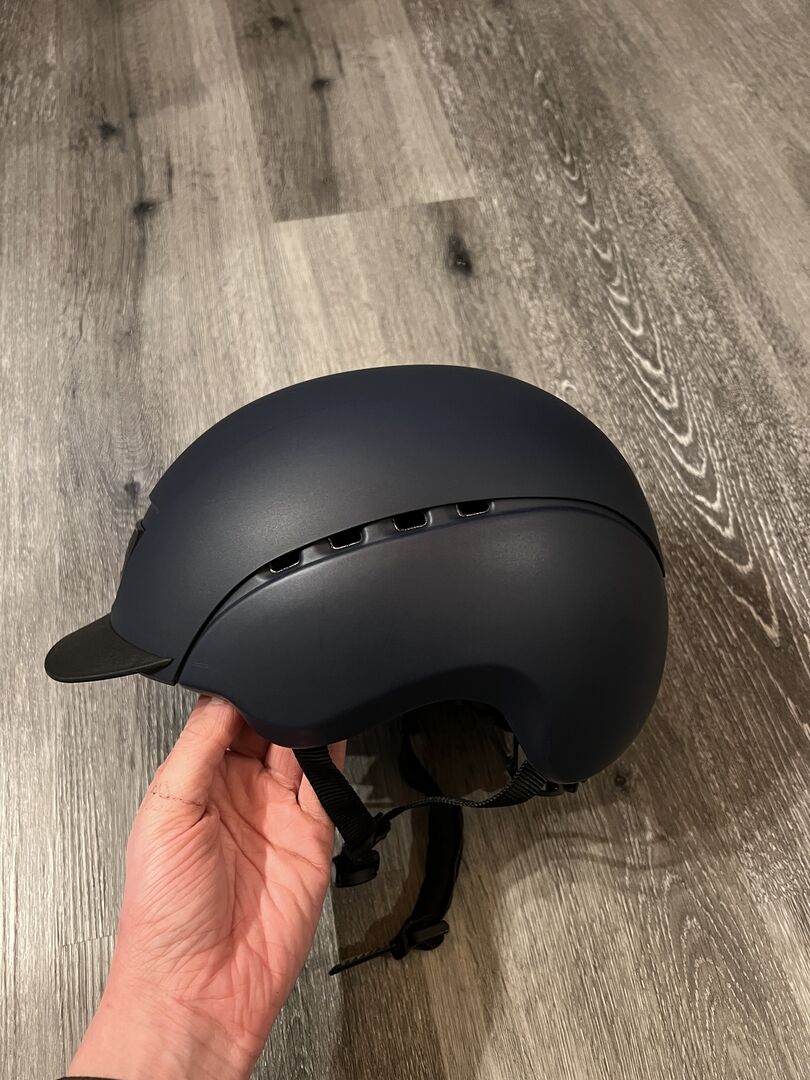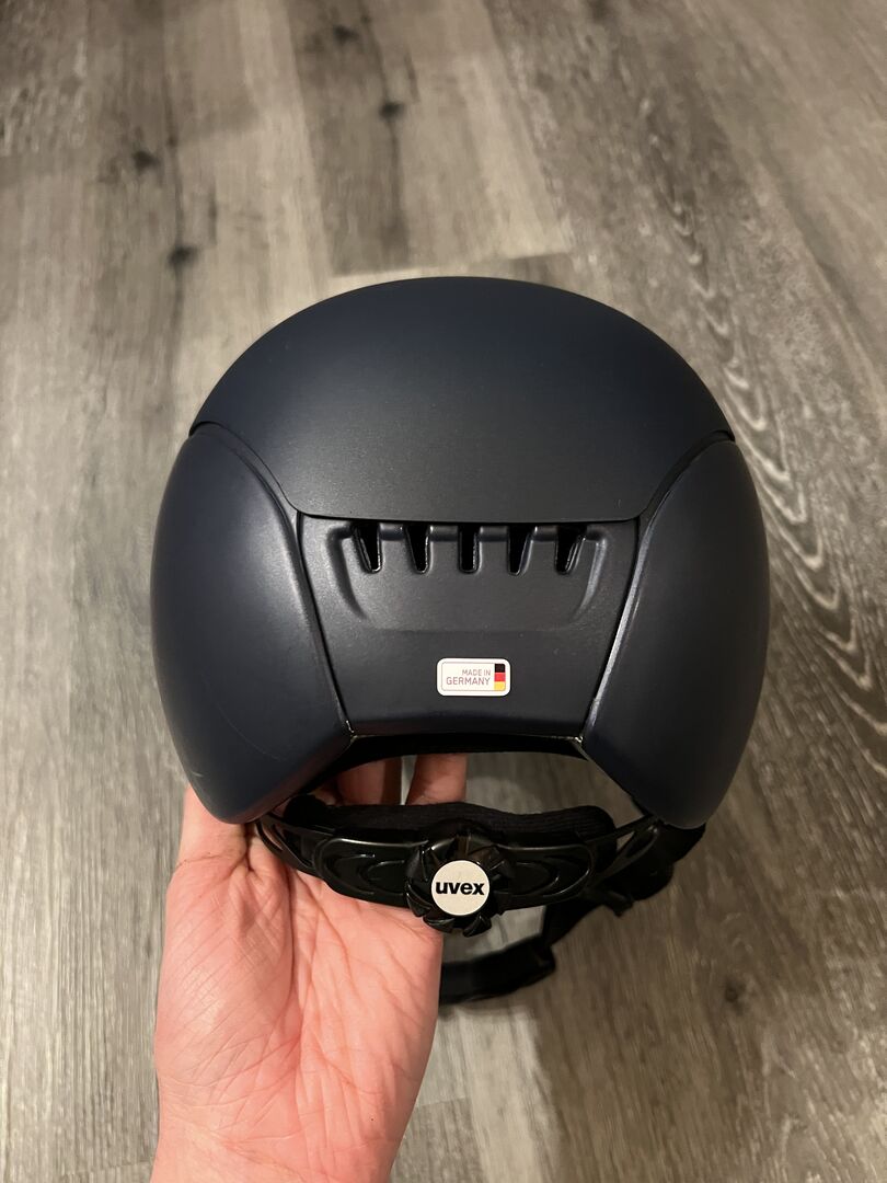Uvex Elexxion Rijhelm Mat Blauw Maat S 55-56 Zo goed als nieuw - Ik verkoop hier een als nieuwe Uvex Elexxion in de kleur Matt Blue. Ik heb hem eind 2024 gekocht als overgangshelm omdat mijn Elexxion gerepareerd werd met Tocsen. In die tijd heb ik de helm echter maar 4 keer gedragen, telkens gedurende 1 uur. Hij is dus absoluut zo goed als nieuw. Hij werd altijd opgeslagen in een verwarmde zadelkamer in een helmtas. Maar nu mijn helm terug is, is hij niet meer nodig. Ik rijd alleen met Tocsen omdat ik altijd alleen op pad ben. De helm is superlicht, je merkt hem nauwelijks en hij zit niet als een pot op je hoofd, zoals veel helmen eruit zien. Dankzij het wiel kan de helm perfect op je hoofd worden afgesteld en is daardoor zelfs voor mensen met gemiddelde maten een goede pasvorm. Ik heb zelf een hoofdomtrek van 56,5 cm en hij paste perfect.