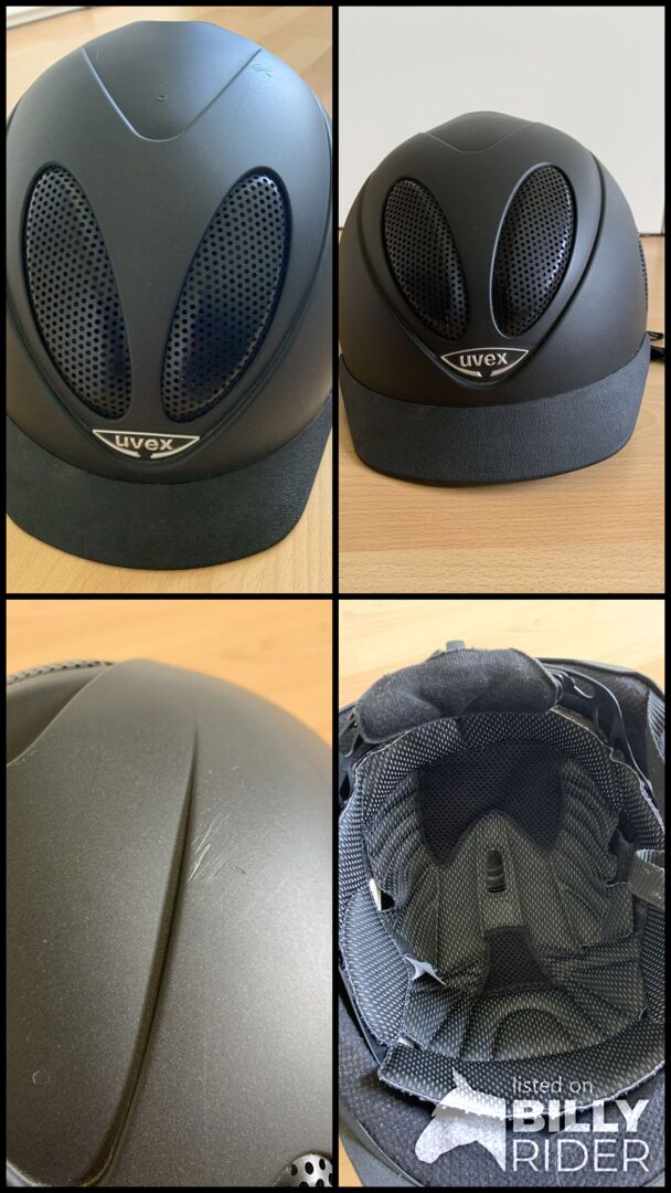 Uvex rijhelm M-L - Veel gebruikt, maar goed en vrij van vallen. Heeft kleine krasjes. Verstelbaar met wielmaat M-L