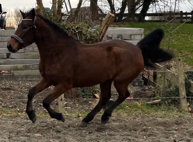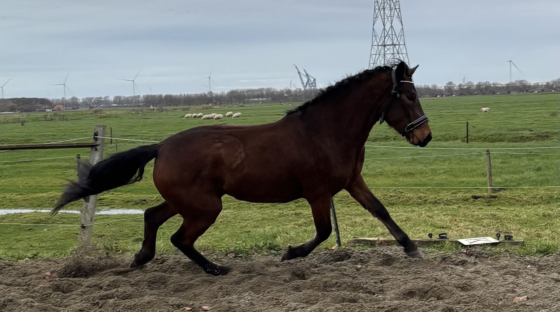 Angel is geboren op 8 mei 2023 en is nog volledig groen. Ze gaat daarom uitsluitend naar iemand met ervaring in het opleiden van jonge paarden.