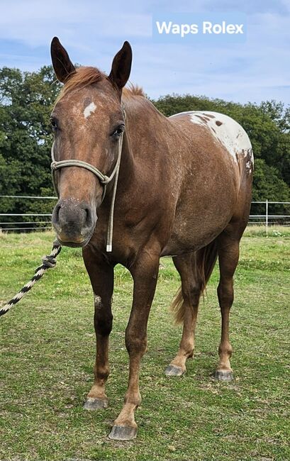 Veelbelovende Appaloosa ruin met een geweldig karakter - Plaats: 54668 Echternacherbrück Te koop is de prachtige Appaloosa-ruin Waps Rolex, rechtstreeks van de fokker, met een uitstekend karakter en veel potentieel voor sport en vrije tijd. Appaloosa-ruin, geboren 03.09.2021, ca. 160 cm, kleur: leverkleurig vos met deken. Hij overtuigt met een correcte, harmonieuze bouw, een stevig fundament met sterke botten en goede hoeven, loopt blootsvoets en is goed in balans gespierd. Zijn zachte en aangename gangen maken het rijden bijzonder comfortabel. Waps Rolex is zeer mensgericht, kalm en braaf, speels en altijd geïnteresseerd in wat zijn eigenaar aan het doen is. Hij wil altijd behagen, leert snel en heeft een evenwichtig, aangenaam temperament. Hij is opgegroeid in een kudde, waar hij een gemiddelde rang heeft en sociaal goed geïntegreerd is. Laden is geen probleem voor hem en hij is vertrouwd met de dierenarts en hoefsmid. De ruin heeft een goede westerntraining en wordt momenteel verder getraind door een professional in de richting van ranchrijden. Hij heeft het grootste deel van zijn training in de wei doorgebracht en weet hoe hij op verschillende plaatsen zoals het strand moet rijden. Hij is zeer betrouwbaar onder het zadel, met talent voor met name ranchklassen, maar is ook geschikt als veelzijdige vrijetijdspartner. Gezond, regelmatig gevaccineerd en ontwormd, regelmatig naar de tandarts en 5-panel n/n. ApHC papieren zijn beschikbaar. ApHC papieren zijn aanwezig. Als toekomstig showpaard of als betrouwbare vrijetijdspartner - met zijn gouden karakter en goede afstamming is deze jongeling een echte belofte voor de toekomst.
