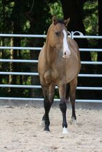Veelbelovende jonge duin - Quarter/Paint ruin met vooruitzichten - Plaats: 66879 Oberstaufenbach Queens King Gun - een prachtige Quarter Horse/Paint Horse ruin, geboren op 11 mei 2024, in de opvallende kleur dun. Hij is dubbel geregistreerd bij de AQHA en APHA en zal naar verwachting een uiteindelijke stokmaat van rond de 153 cm bereiken. Met zijn correcte, compacte en sterke bouw, goede bespiering en harmonieuze bovenlijn heeft hij alles wat je je maar kunt wensen in een toekomstig sport- of vrijetijdspaard. Hij komt uit een hoogwaardige all-round/reining afstamming en is genetisch 7-panel n/n getest. Queens King Gun groeit op in een open stal in een kleine, gemengde kudde, maar is ook vertrouwd met stallen. Hij is sociaal in de groep, is zeer mensgericht en vriendelijk en maakt indruk met zijn kalme, ontspannen en knuffelige karakter: hij is ongecompliceerd in de omgang, toont goede zenuwen en leert snel. De jonge ruin wordt dagelijks gehanteerd, is halstertraind en wordt spelenderwijs geïntroduceerd in de rijkunst. Hij weet om te gaan met honden, tractoren en andere alledaagse prikkels. Regelmatige vaccinaties en ontwormingen zijn vanzelfsprekend. Hij is vertrouwd met de dierenarts en hoefsmid en is gezond, fit en past bij zijn leeftijd. Hij wordt geleverd met AQHA- en APHA-papieren, een paardenpaspoort en een fokkerijcertificaat. Als toekomstig showpaard of betrouwbare partner in de vrije tijd - met zijn uitmuntende karakter en veelzijdige potentieel is Queens King Gun een echte belofte voor de toekomst.