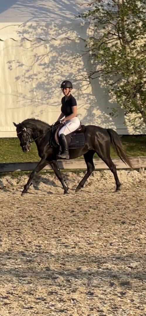 Veelbelovende sportpony in speciaal tenue - Malibu is een 3-jarig zwart paard dat niets te wensen overlaat. Ondanks zijn jonge leeftijd heeft hij alles wat je in een partner kunt wensen; een rustig karakter, geweldige bewegingen, moed, leergierigheid en gezondheid. Hij is bereden en gereden. Hij laat zich van zijn beste kant zien en toont ook aanleg voor meer. De ruin heeft zelfs al aan wedstrijden geproefd. Malibu is vrij laag in rang en zeer compatibel met andere paarden. Trailer rijden, naar de hoefsmid gaan en alleen rijden zijn geen probleem voor hem.