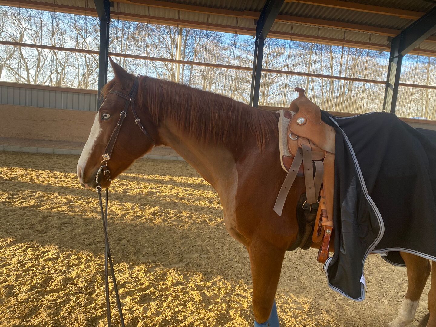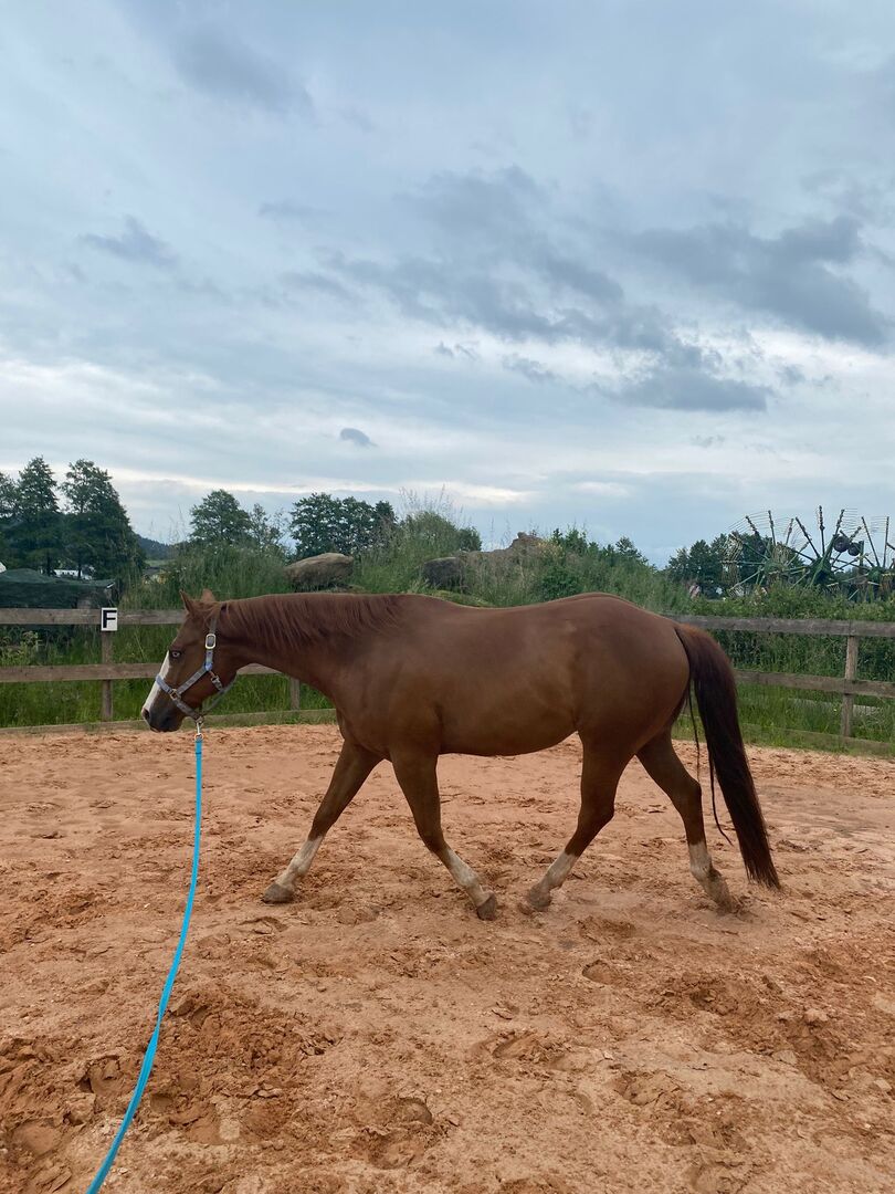 Veelzijdige Quarter Horse ruin met een geweldige geest - Plaats: 95478 Kemnath Cashn Cody - prachtige Quarter Horse ruin, geboren in 2016 met een stokmaat van 155 cm, is op zoek naar een geweldige nieuwe thuis wegens pensioen. Iceman is een paard dat met je door dik en dun gaat. Hij heeft een gevoelig karakter, is zachtaardig en wil altijd behagen. Hij is niet ondeugend, heeft nog nooit gebokt etc. Vanwege zijn gevoelige karakter is Iceman helaas niet geschikt voor beginners of angstige ruiters. Hij heeft een ruiter onder het zadel nodig die hem begeleidt en zekerheid geeft. Iceman heeft een zeer goede westerntraining en is klaar om te showen in de allroundpiste. Hij is getoond in trail, ranch rijden, ruiterschip, enz. De ruin wil echter graag op verschillende manieren bezig gehouden worden, bijvoorbeeld in de wei of met grondwerk. Hij is braaf op shows en thuis. Zijn afstamming bevat nog goed oud reining/snijbloed. Iceman is een Dry Cody/ Miss N Cash kleinzoon. Zijn accessoires zoals zadel, onderlegger, bitten, snaffel etc. kunnen op verzoek worden aangeschaft.