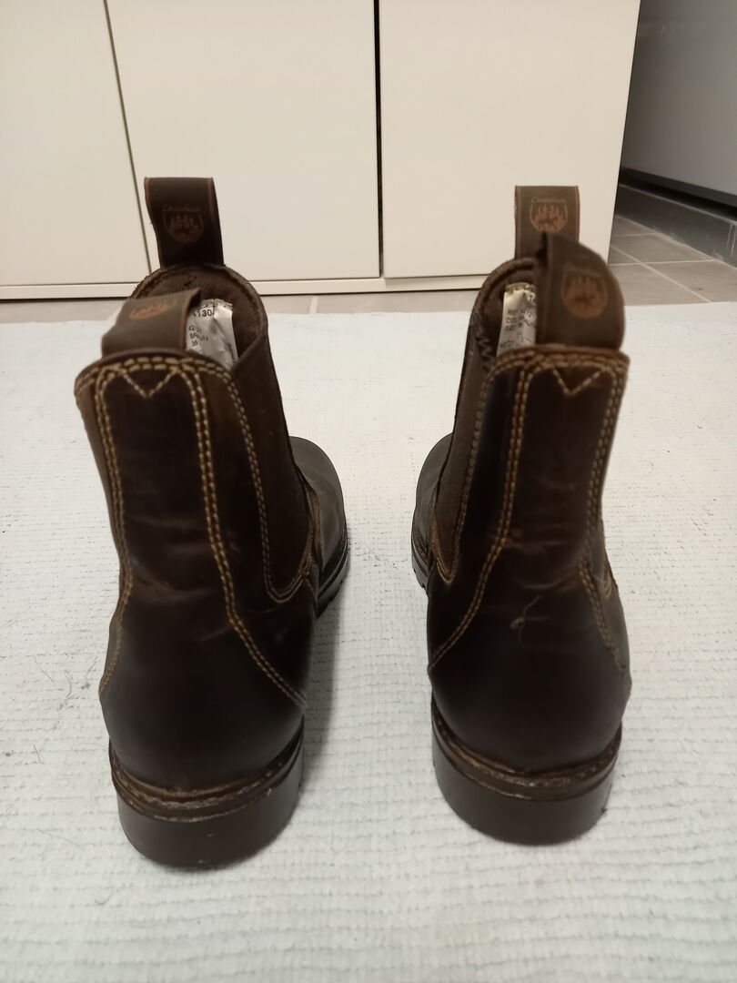 Veiligheids enkellaarsjes met stalen neus - Nauwelijks gedragen enkellaarsjes van dik leer met stalen neus in maat 36.Particuliere verkoop, geen teruggave of garantie.