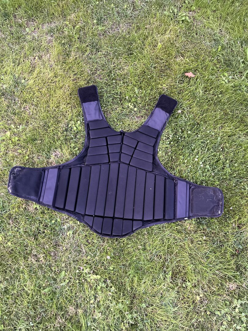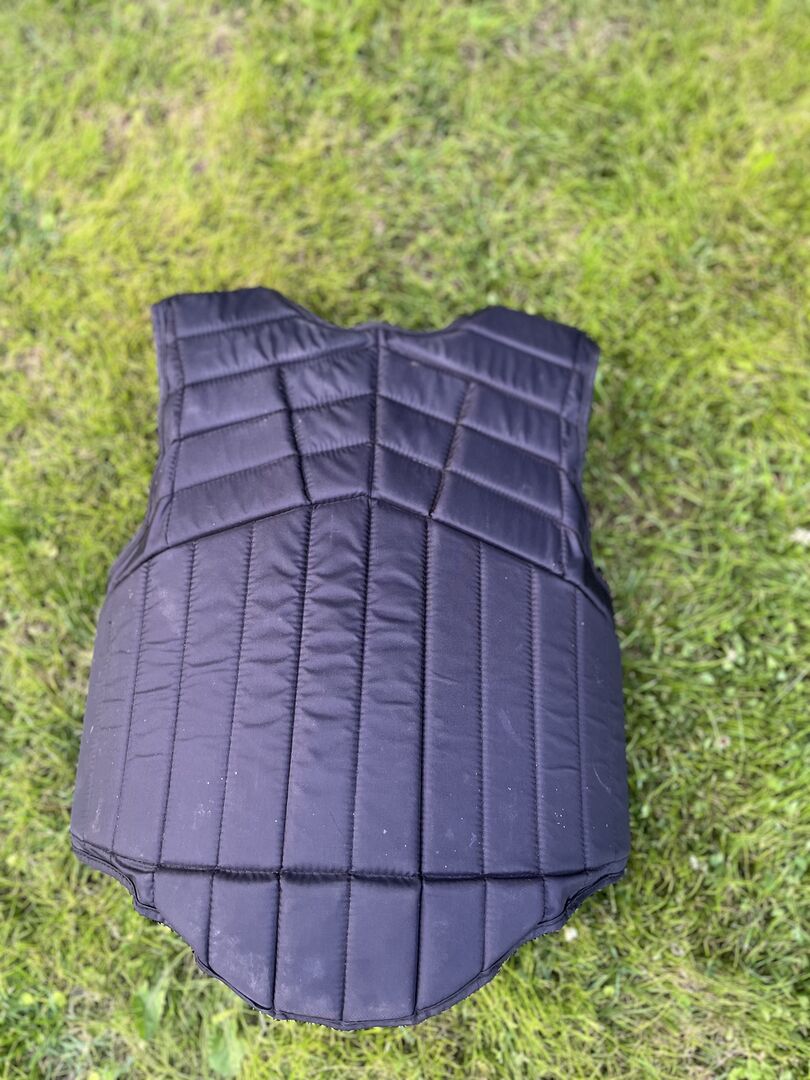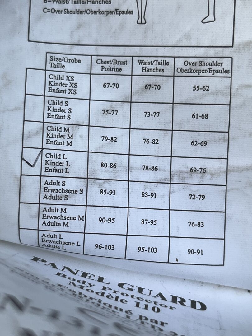 Veiligheidsvest Felix Bühler - Ik verkoop een springgilet in kindermaat L. De borstomtrek is 80-86cm, de taille 78-86cm en de romp/schouders 69-76cm. Het vest is goed en ruim verstelbaar bij de schouders en taille. De stuitbescherming is opvouwbaar. De buitenstof is gemaakt van nylon en de binnenstof is gemaakt van nylon en polyester. De bodywarmer heeft een goede demping en pasvorm.