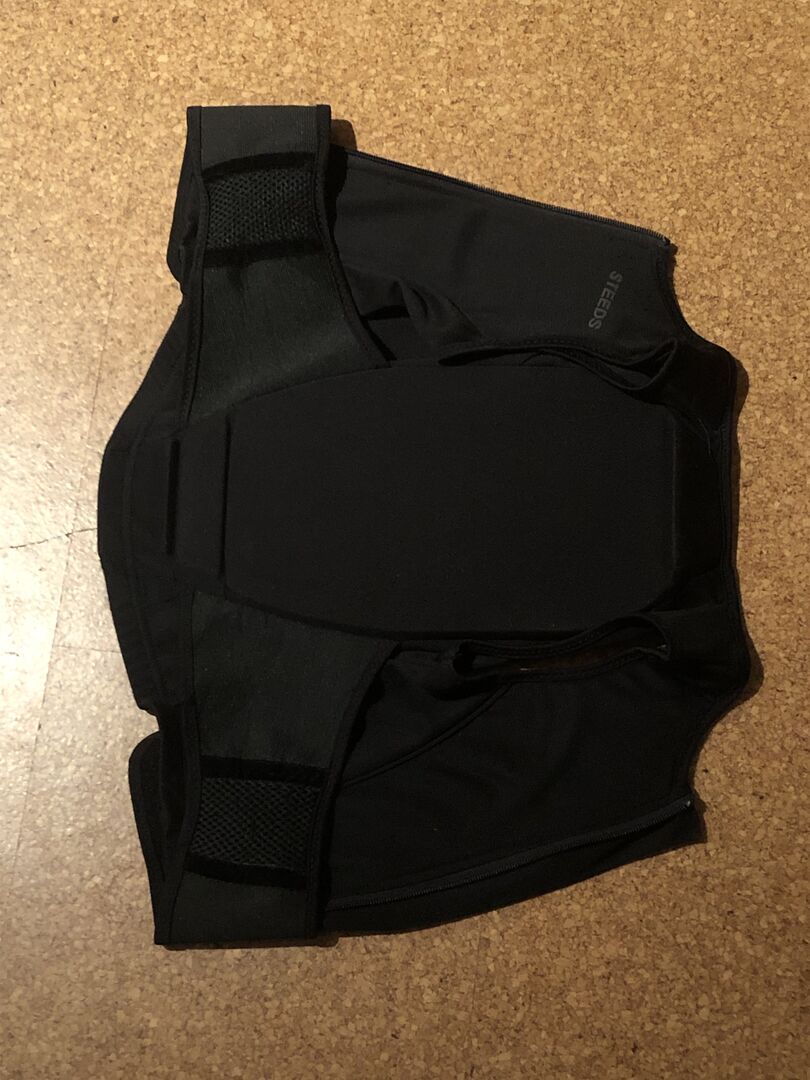 Veiligheidsvest / rugbeschermer paarden maat c-l kinderen - Hallo! Ik verkoop een vest van Steeds. Het heeft een klittenbandsluiting en een rits om het te sluiten. Het is gedragen maar niet gevallen. Er zijn wel lichte gebruikssporen, zoals het schrift aan de binnenkant (foto 2), maar dit beperkt het gebruik niet. De aangegeven maat is C-L, wat overeenkomt met een lichaamslengte van 1,27m-1,41m (foto 3+4).