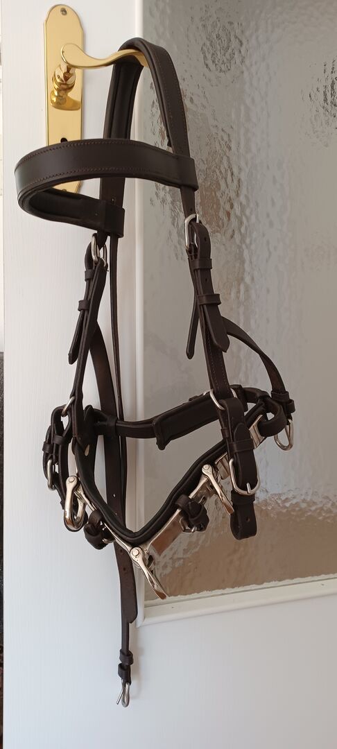 VERKOOP Kaptoom met neus ijzer leder bruin Cob - Verkoop van een kaptoom met neusijzer in maat Cob van bruin leer, incl. bitriem. Altijd goed voor gezorgd, alle naden in perfecte staat, geen andere schade. Helaas past het niet helemaal bij die dikke schedel.