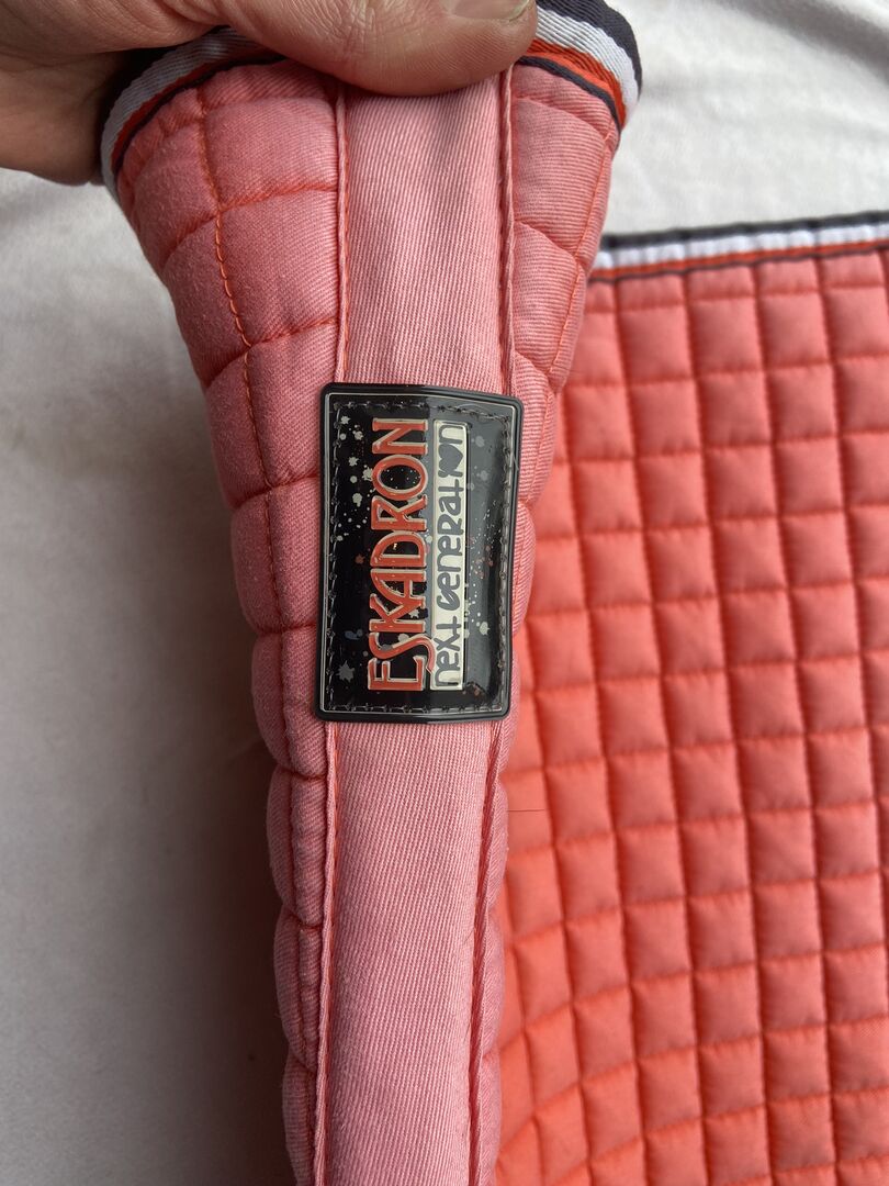 De zadeldekjes zijn allemaal heel/intact en fris gewassen. Het witte zadeldek is licht verkleurd aan de binnenkant maar niet vies. De klittenbandsluitingen zijn allemaal in goede staat. De zadeldekjes zijn altijd gewassen en droog opgeborgen.