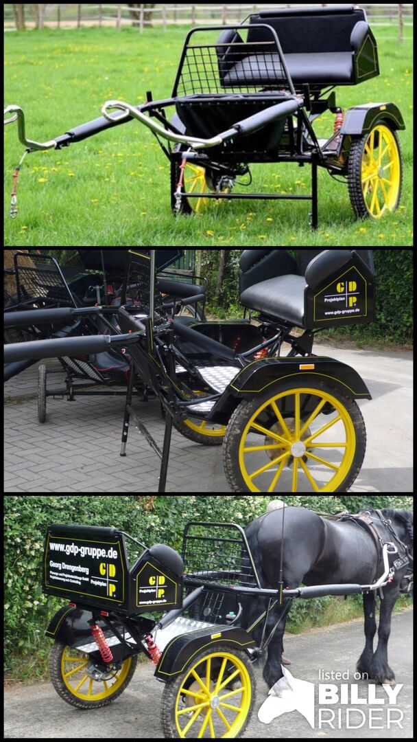 Vervoer/gig, X-Chaise - Ik bied een zo goed als nieuwe koets aan, heeft alleen in de garage gestaan, nauwelijks gebruikt, heeft misschien nieuwe banden nodig, verder technisch top. Het bijpassende tuig, ongebruikt, kan ook gekocht worden. Alleen ophalen!