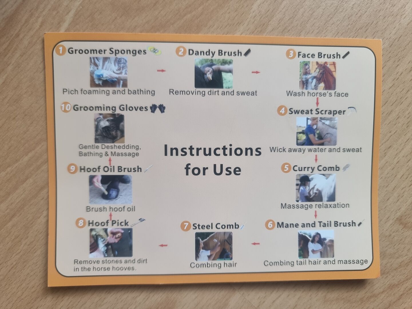 Verzorgingsset voor paarden - Paardenverzorgingsset Gloednieuw, oranje, goed voor beginners omdat er een handleiding bij zit