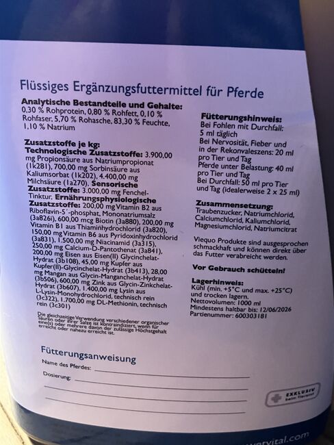 VetVital Viequo Elektrolyten Energizer 1 literfles - Geopend sinds september, koel bewaard, minstens 80 % nog in voor 28 euro. Nieuwprijs 45 euro Particuliere verkoop, geen garantie