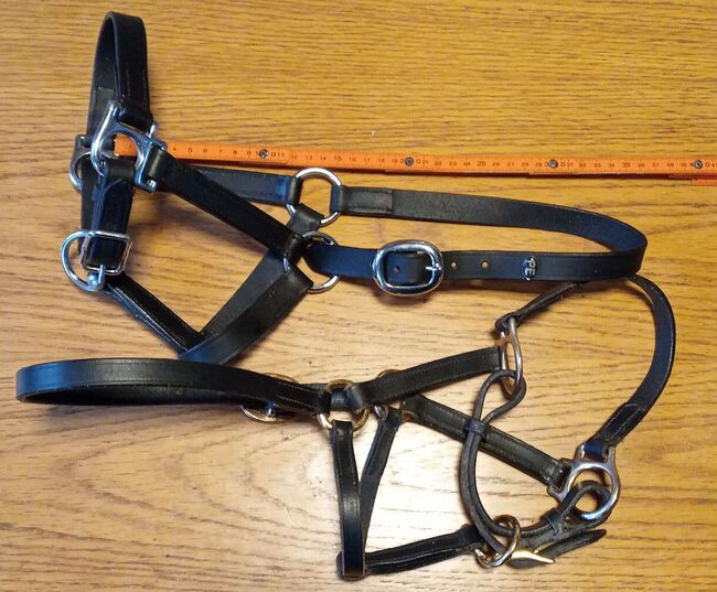 Veulenhalster, 2x leer + 2x nylon - te koop 4 veulenhalsters, zo goed als nieuw, passen ook op minishetty. - Leder, zwart, zilver beslag - Leder, zwart, gouden beslag - Nylon, zwart, zilver beslag - Nylon, donkerblauw, zilver beslag alles bij elkaar 20 €