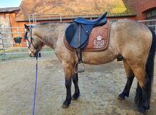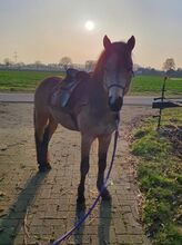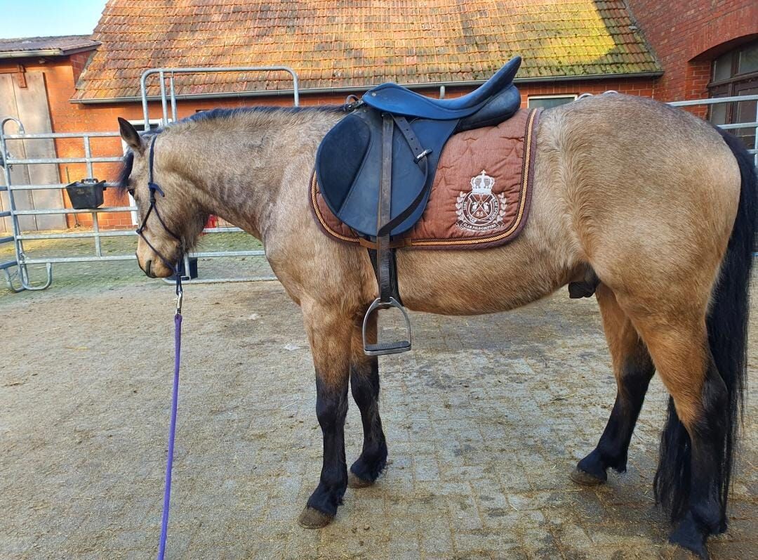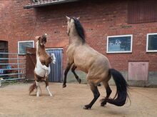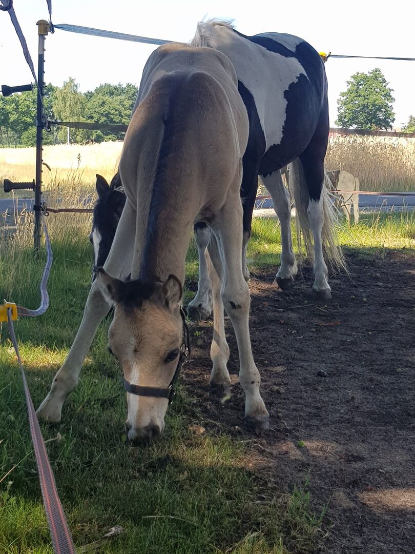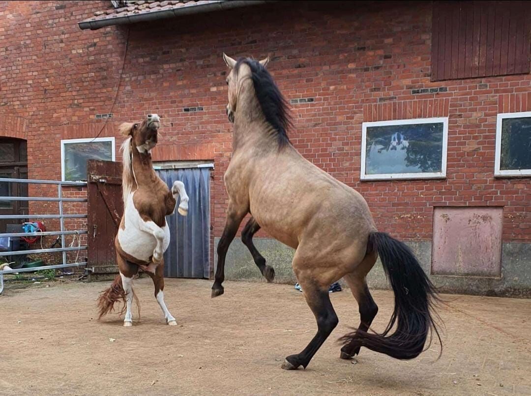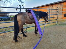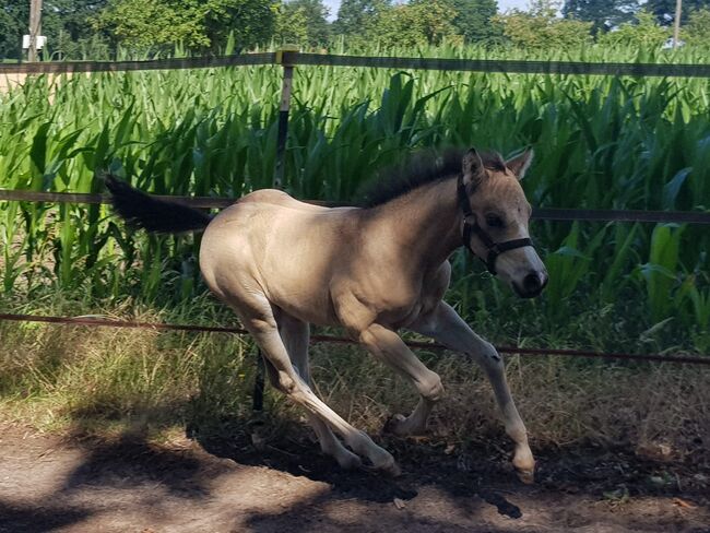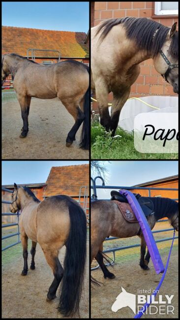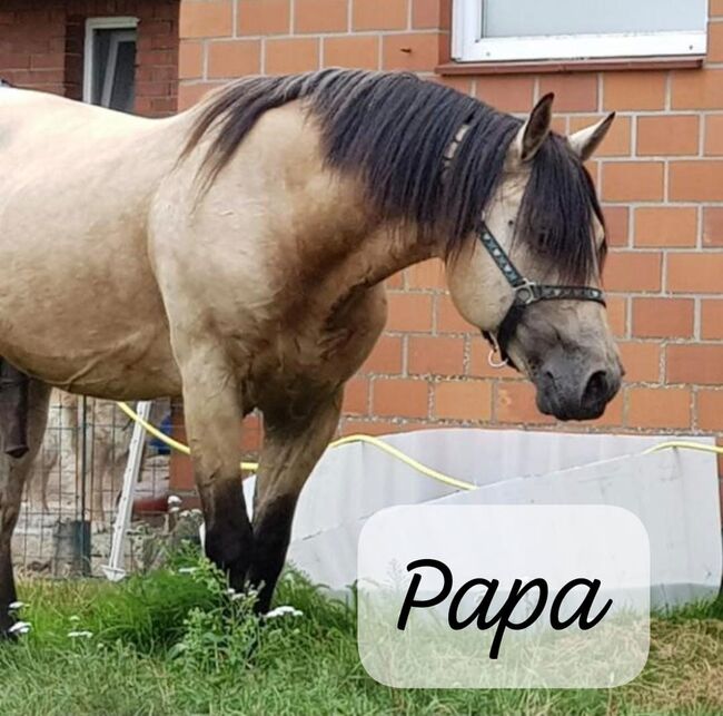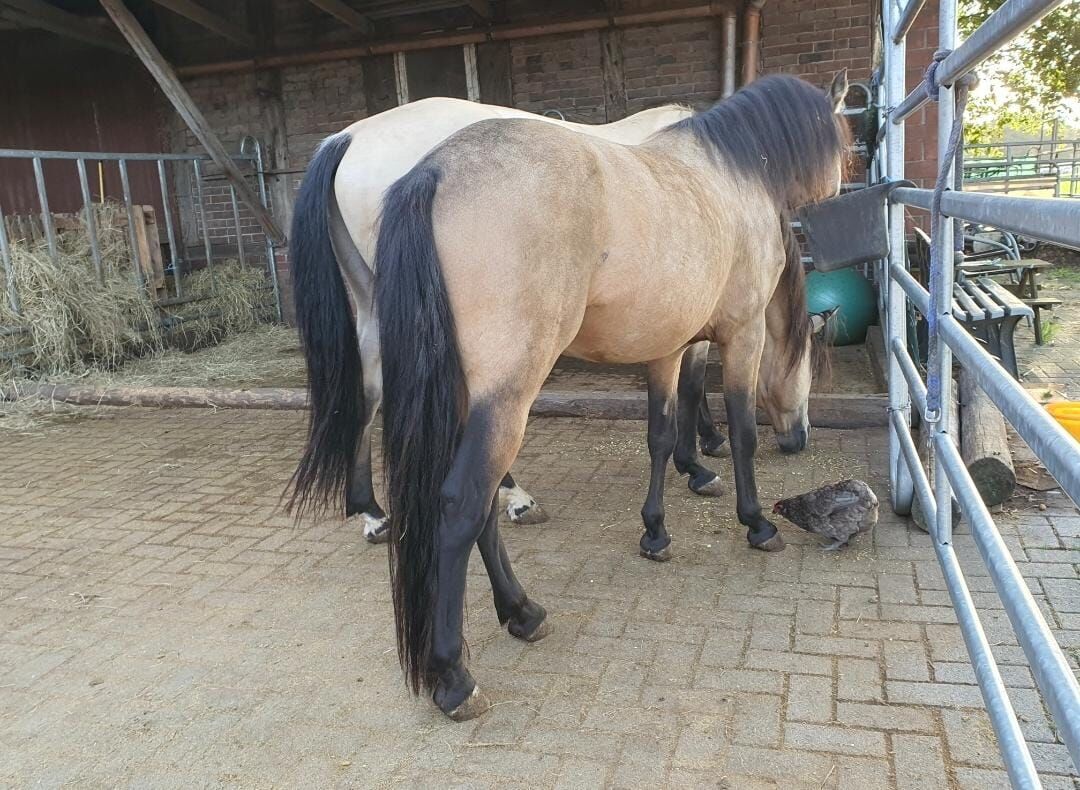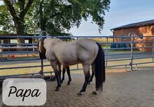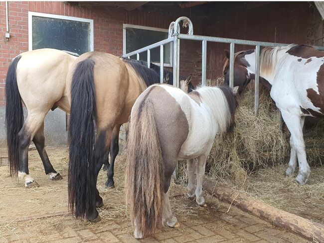 Vier pony's - Wij verkopen onze 3 jaar oude zelfgefokte Quater Pony hengst in de kleur Sooty Buckskin. Hij is een geweldige pony die graag leert en altijd vriendelijk is tegen mensen. Hij woont in een jongenskudde in een losse stal met ruinen en hengsten van verschillende leeftijden. Hij kent ook de box en is geen enkel probleem. Hij is nog hengst maar laat zich graag aanleggen. Midnight Cash is langzaam aan het werk gegaan, 2x zadel op, zeildoekpaal over of achter hem getrokken en lopen over paaltjes. Hij is gelongeerd in stap en draf, heeft geweldige gangen en is heel goed in balans. We noemen hem meestal Baby, Baby is compatibel en staat rond het midden (naar onderen), hij is lief, ook als er nieuwe mensen in de groep komen....maar extreem speels....en daar komen we bij de reden om hem op te geven, helaas weet hij niet wanneer het goed is. Omdat iedereen in de groep te sociaal is. Daarom brengt hij nu meer tijd door in de box, zodat de anderen wat rust krijgen. Hij heeft er geen probleem mee om alleen gelaten te worden. Misschien heeft hij een groep nodig die hem vertelt dat het tijd is om te stoppen met spelen. Hij doet niemand pijn als hij speelt, maar mijn oude senior heeft moeite met eten en de jaarling, de 2-jarige en zijn vader zijn ook erg druk met hem.