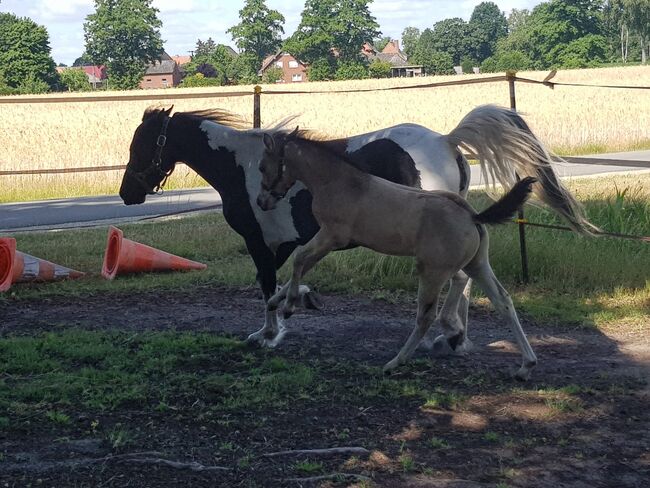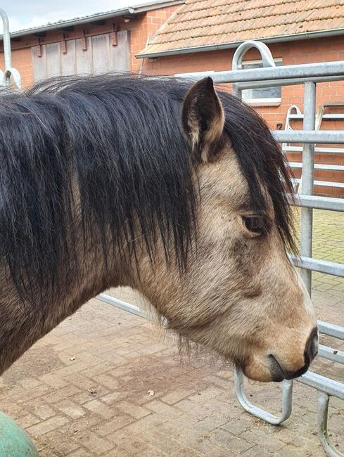 Baby heeft een prachtig hoofd (gemixt van zijn vader "Quaterhorse" en de genen van zijn moeder " welsh A x unknown"), heeft geweldige ogen en zijn oren zijn om in te bijten, hij heeft ook een geweldige rug en staat super.